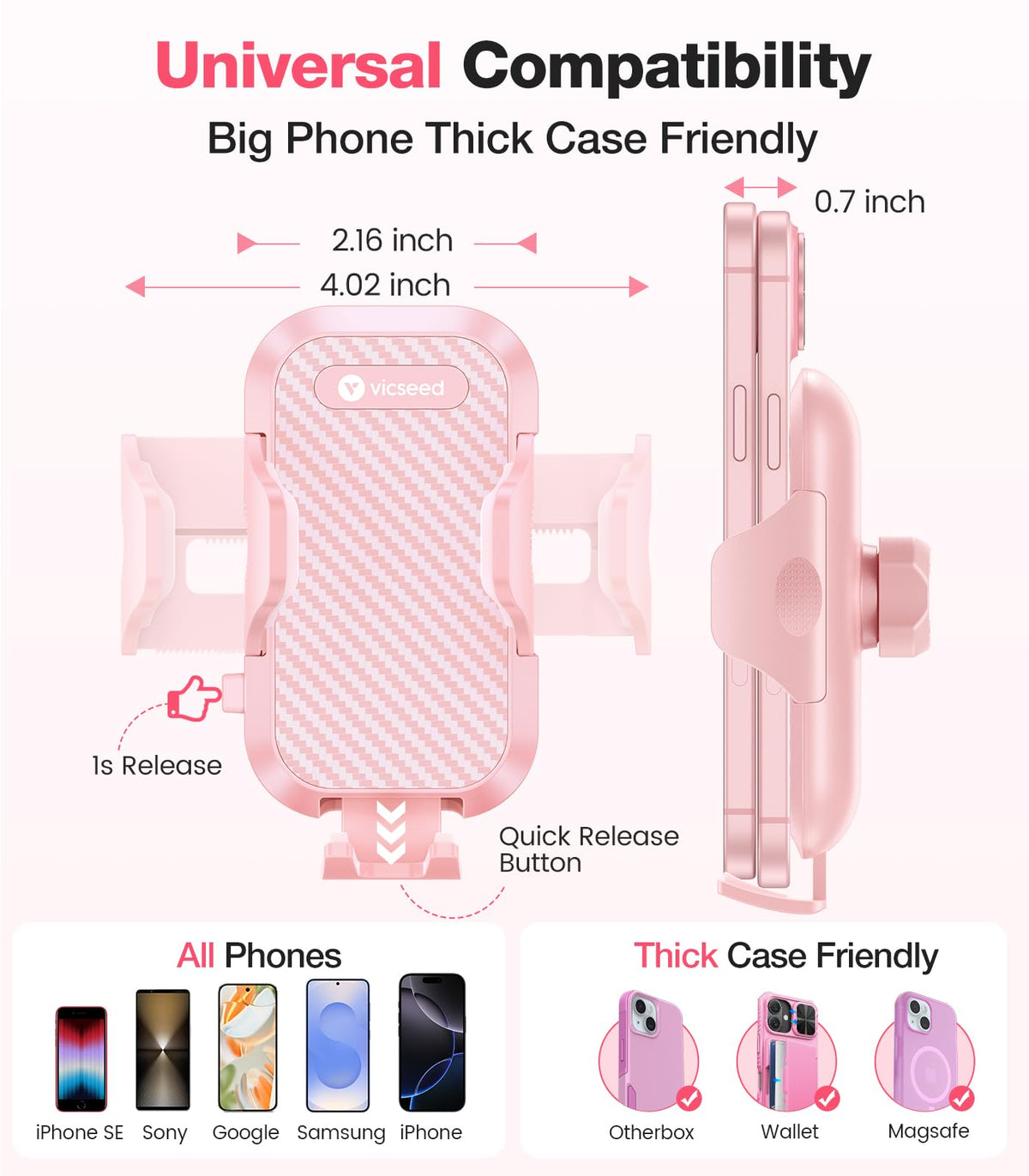 Color and Material: Available in a stylish Pink, this phone holder not only provides functionality but also adds a pop of color to your car’s interior. Crafted from high-quality rubber and other durable materials, it meets VICSEED’s high standards for beauty and quality.