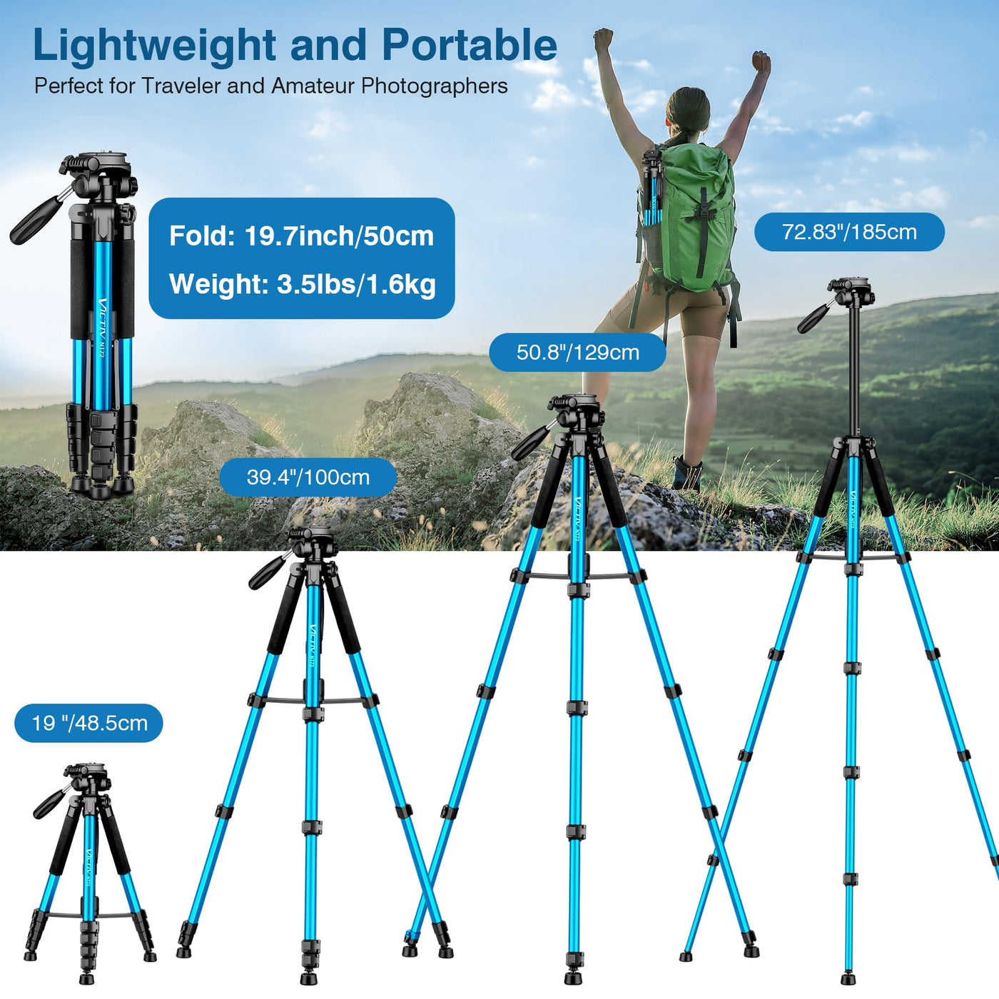 Victiv 72 Inch Camera Tripod, Tall Tripod For Camera Cell Phone, Heavy Duty Camera Tripod Stand, Professional Aluminum Monopod, Compatible With Canon Nikon Sony Dslr Cameras Blue
