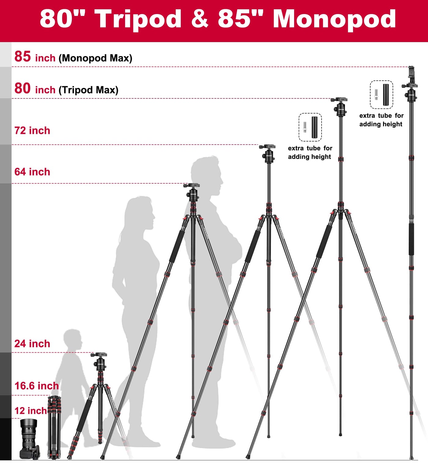 Victiv 80/85 Inches Heavy Duty Tripod For Camera And Phone, 85' Camera Monopod Tripod, Dslr Binoculars Spotting Scope Camcorders Video Tripod Stand, 360 Degree Ball Head, 35 Lbs Loads