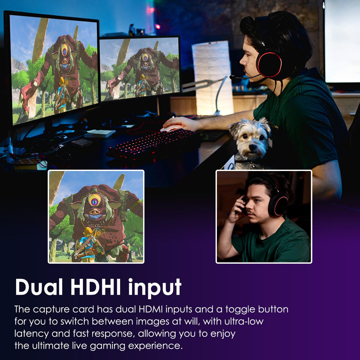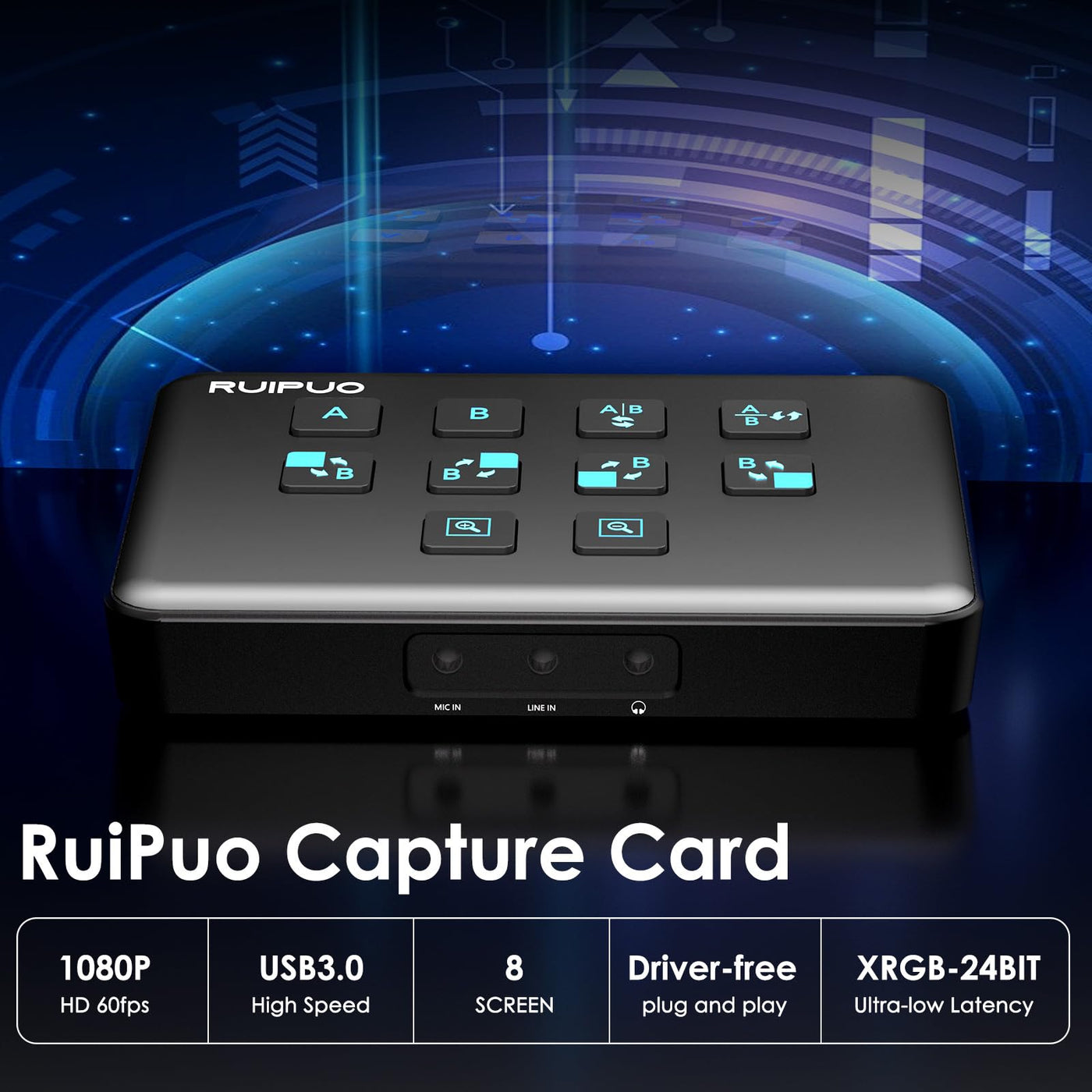 Ruipuo Video Capture Card 1080P 60Fps Black 4K 60Hz Dual Hdmi Input Video Capture Card Hdmi To Usb 3.0 Video Capture Card For Obs Live Broadcasting,Recording,Streaming And Podcasting