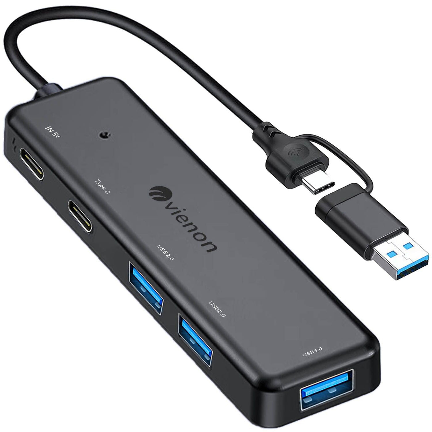 Vienon Usb 3.0 Hub (5 In 1), Usb C Hub, Usb C To Usb 3.0 Hub Adapter With Usb C Power/Data Ports, Usb Extender Usb A&C Docking S