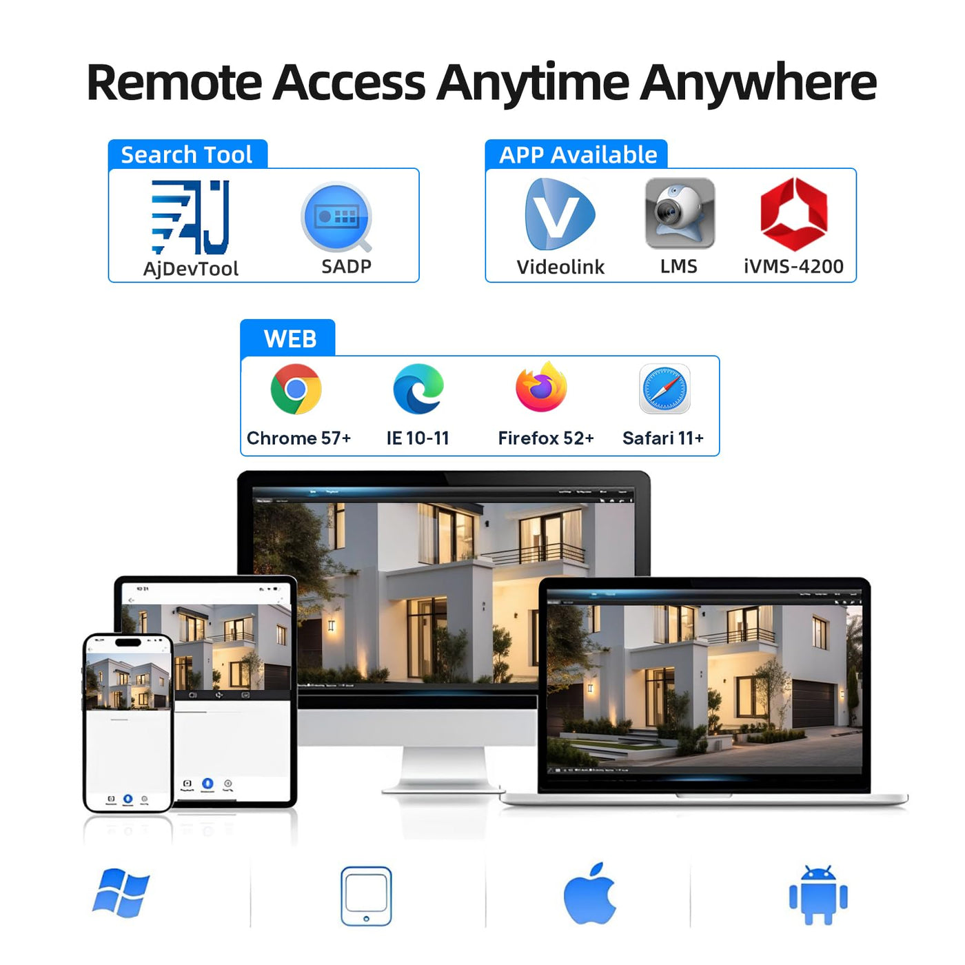 This Compatible For 8Mp Ip Camera Can Record Real-Time 6Mp@30Fps And 8Mp@20Fps, So That Recorded Video Plays Back Smoothly And Clearly. With Outdoor 4K 2160P Camera, You Can See Your 4K Turret Camera Footage In Stunning 4K Resolution(Four Times The Clarity Of 1080P) For Amazing Detail And Superior Recognition Of Faces Or License Plates.