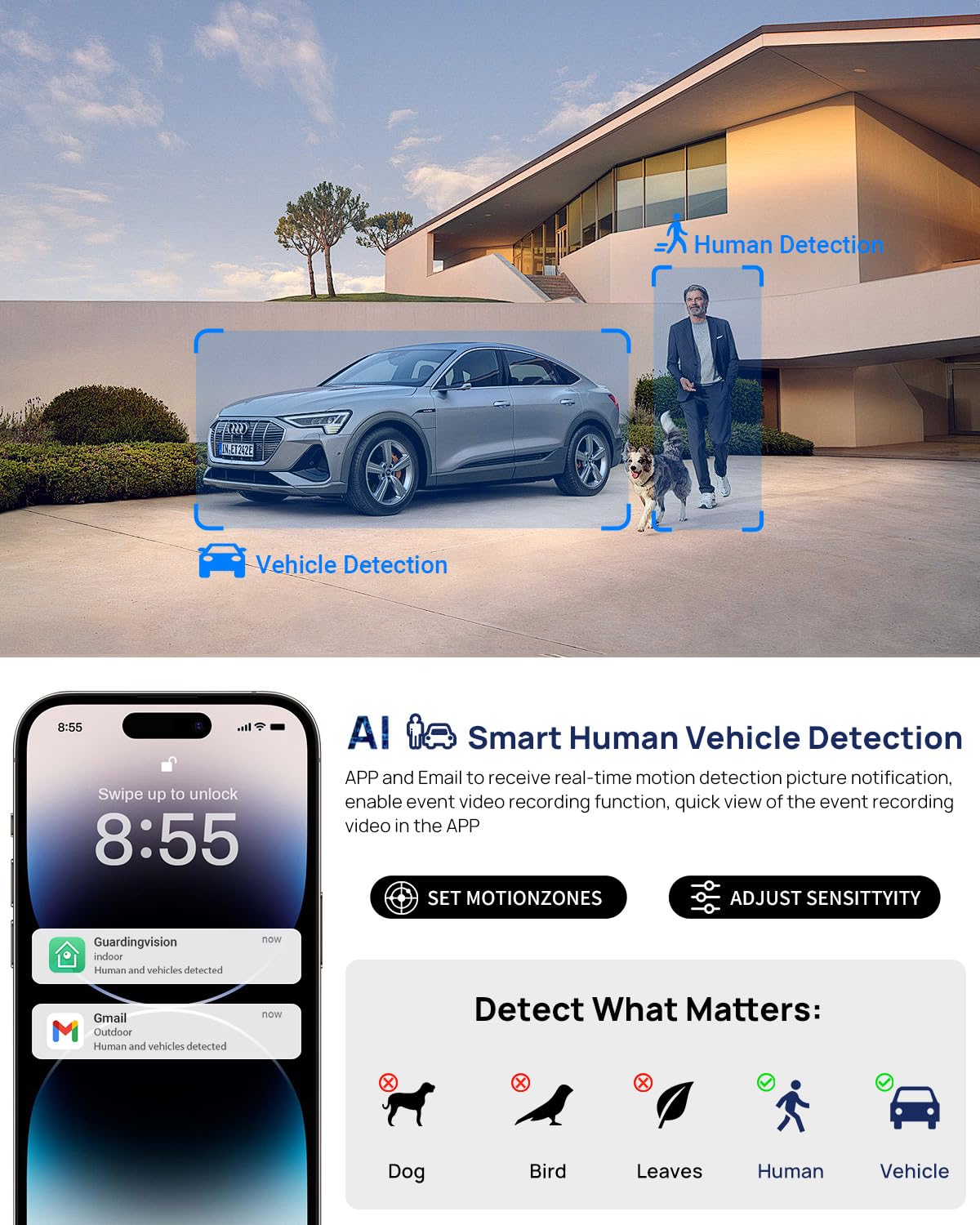 Vikylin 5Mp Ip Poe Camera Two-Way Audio/Talk, Double Active Deterrence, Smart Dual Light Full Color Night Vision 98Ft, Ai Human Vehicle Detection, Microsd 512Gb, Vk353-Liuf-Sl