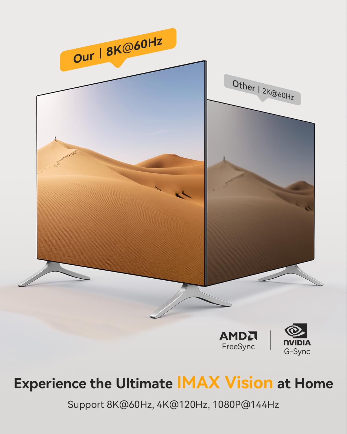 Q: What resolutions does the Vilcome DisplayPort Switch support?A: The Vilcome DisplayPort Switch supports up to 8K@60Hz, 4K@120Hz, and 1080P@240Hz resolutions, allowing for an exceptional audio-visual experience.