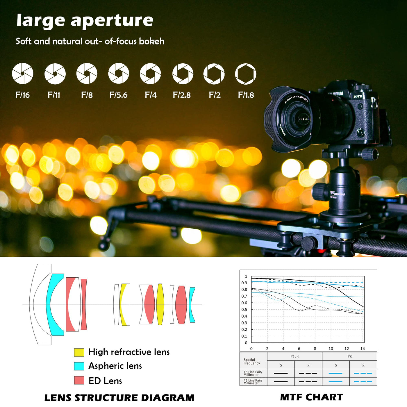 Viltrox Af 13/1.4 Lens Is A Super Wide-Angle Large-Aperture Prime Lens For Fuji X-Mount Camera Models. It Features Stm Focusing Motor, Step-Less Aperture Dialing, And Supporting Eye/Face Detection Autofocus. The Compact And Lightweight Body Makes It The Best Choice For Vlog Creation. And Your Outstanding Video Shooting Will Attribute To The Optimized Video Performance And Insignificantly Weak Focus Breathing!