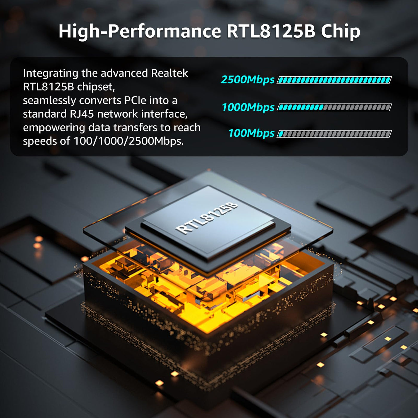 Vimin 2.5G Base-T Pcie Network Card With Realtek Rtl8125B - Transform Pcie Slot Into 2.5G Ethernet Port, 2500/1000/100Mbps Pci Express Gigabit Ethernet Card Supports Windows 11/10/8.1/8/7 & Linux Os