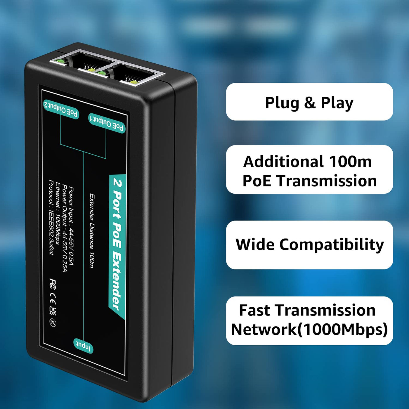The Vimin 2-Port Poe Repeater Is Designed To Provide Fast And Efficient Support For Poe Cameras, Poe Switches, And Wireless Aps. With Its Simultaneous Poe Powering Feature, It Can Supply Power And Transmission The Data To Two Poe Devices At The Same Time, Eliminating The Need For Extra Power Cords And Simplifying Wiring. With A Maximum Speed Of 1000Mbps, You Can Enjoy Smooth Video Streaming. With The Vimin 2-Port Poe Extender Repeater, You Can Easily Extend Your Network By An Additional 100M(328Ft) For Power And Data Transmission.The Extender Is Compatible With Ieee802.3Af/At Standards And Can Be Used With A Variety Of Poe Devices Such As Security Cameras And Wireless Access Points. Additionally, The Repeater Is Easy To Install And Operate, With No Professional Skills Required. If You'Re Looking For A Fast And Efficient Poe Repeater, This Product Is The Perfect Choice.