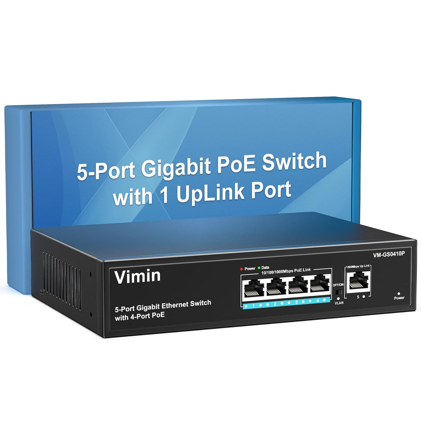 Vimin 4 Port Gigabit Poe Switch With 1 Uplink Gigabit Ports, 5 Port Unmanaged Ethernet Poe Switch With 72W Power, Support Ieee80