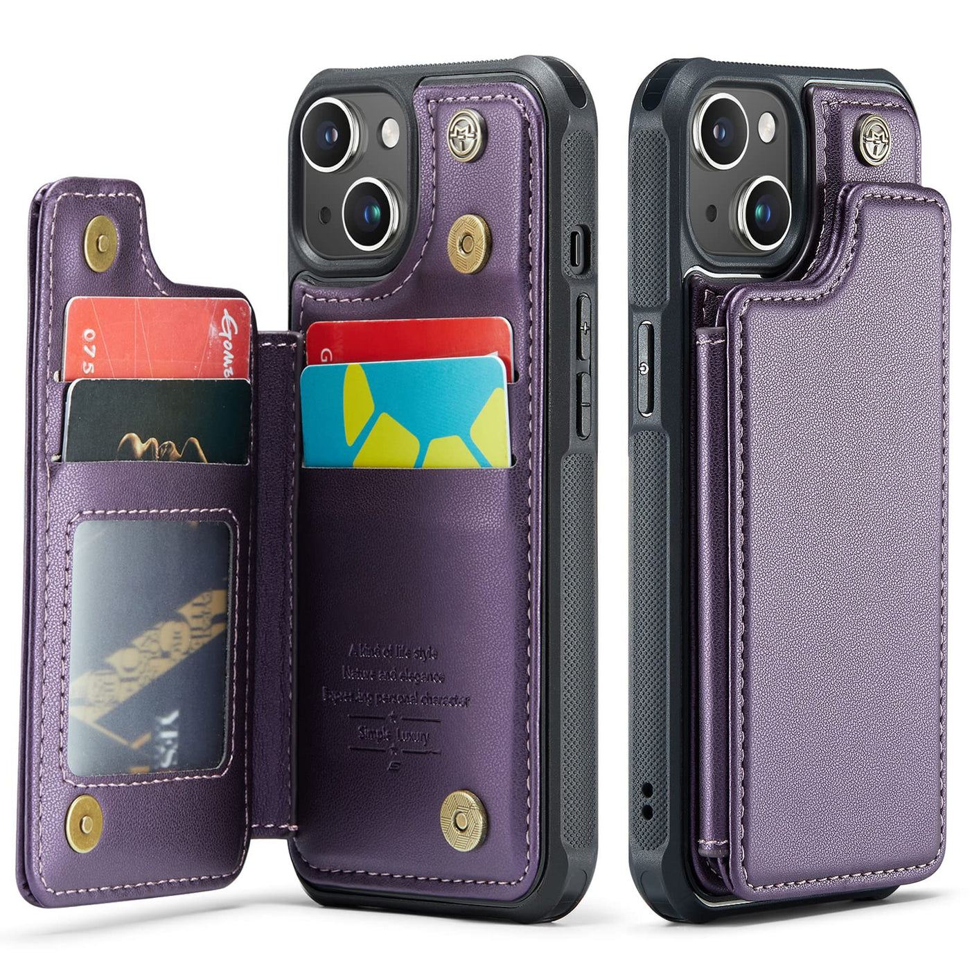Vinich Iphone 13 Case With Card Holder, Iphone 13 Wallet Case For Women Men With Pu Leather Kickstand Card Slots, Magnetic Clasp Durable Shockproof Cover 61 Inch, Purple