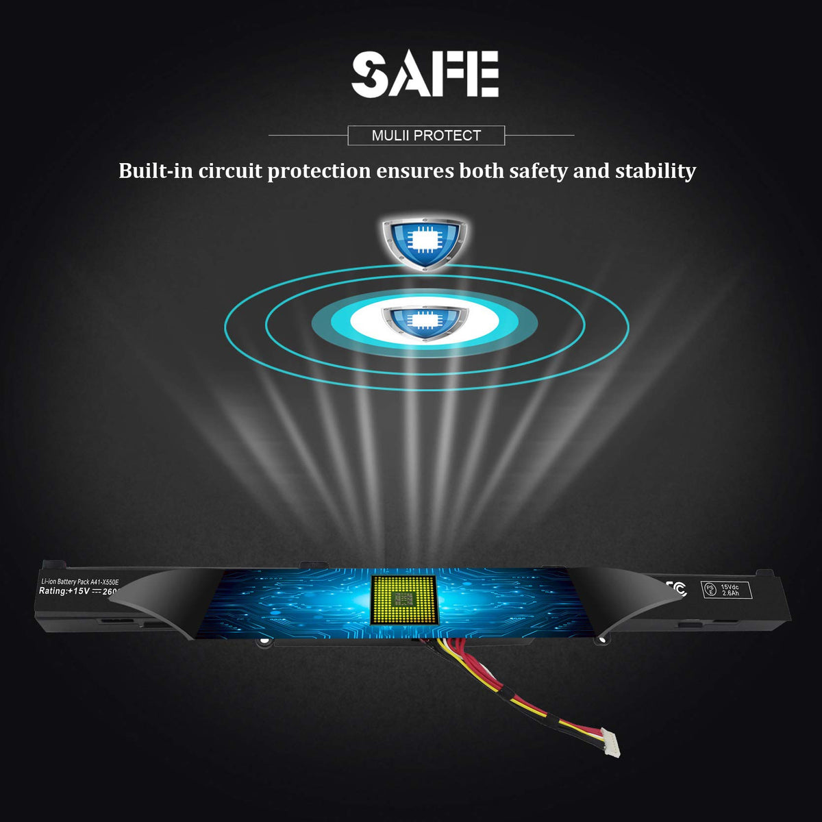 Q: What are the specifications of the Vinpera A41-X550E battery?A: The Vinpera A41-X550E battery features a Li-ion type, 15V voltage, a capacity of 44WH/2600MAH, and consists of 4 cells. It is designed to restore your laptop's original performance while ensuring safety with CE/FCC/RoHS certification.