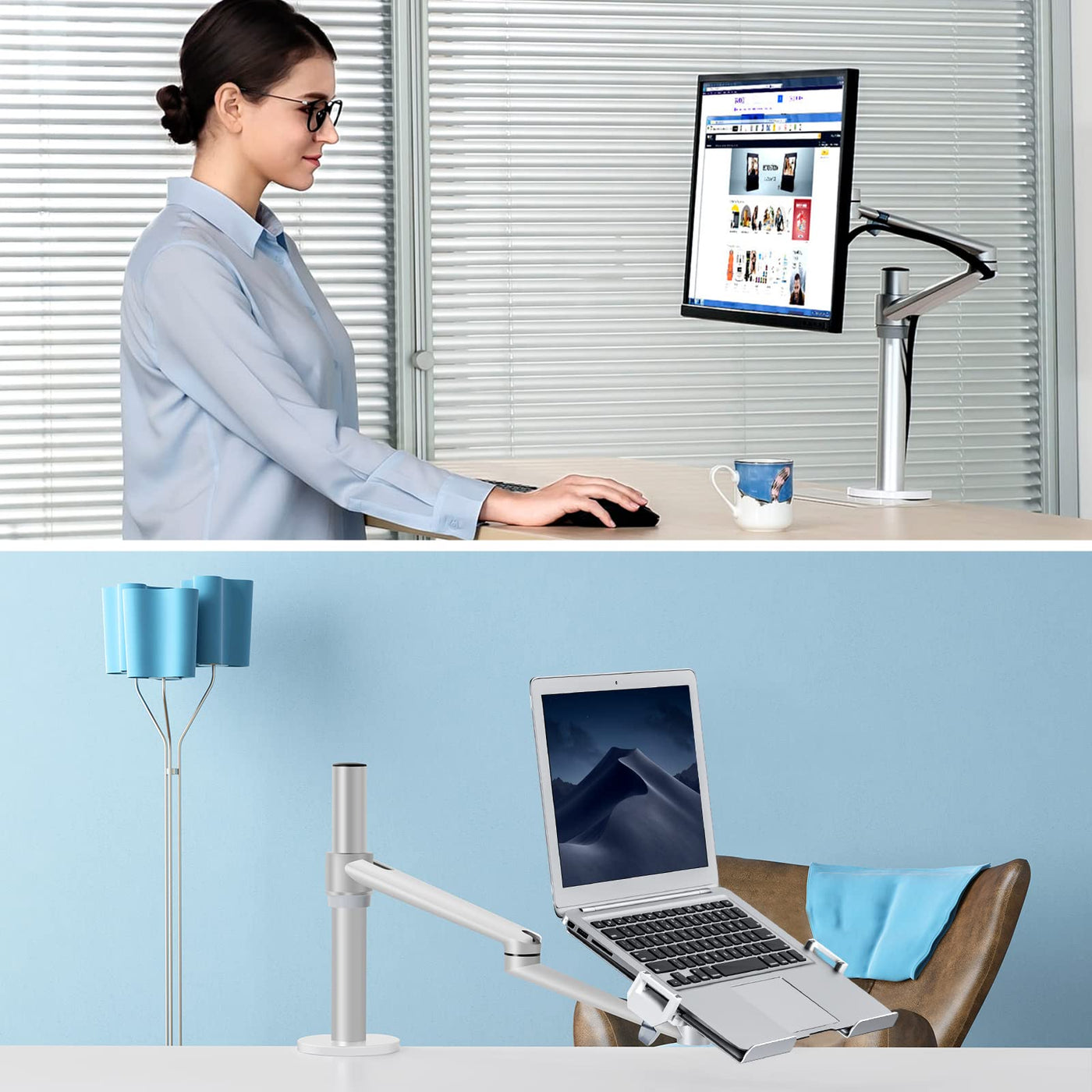 Viozon Laptop/Notebook/Projector Mount Stand,Height Adjustable Single Arm Mount Support 12 17 inch Laptop/Notebook/Tablet, Free Removable VESA 75X75 and 100X100 for Monitor 17 32 inch (Silver)