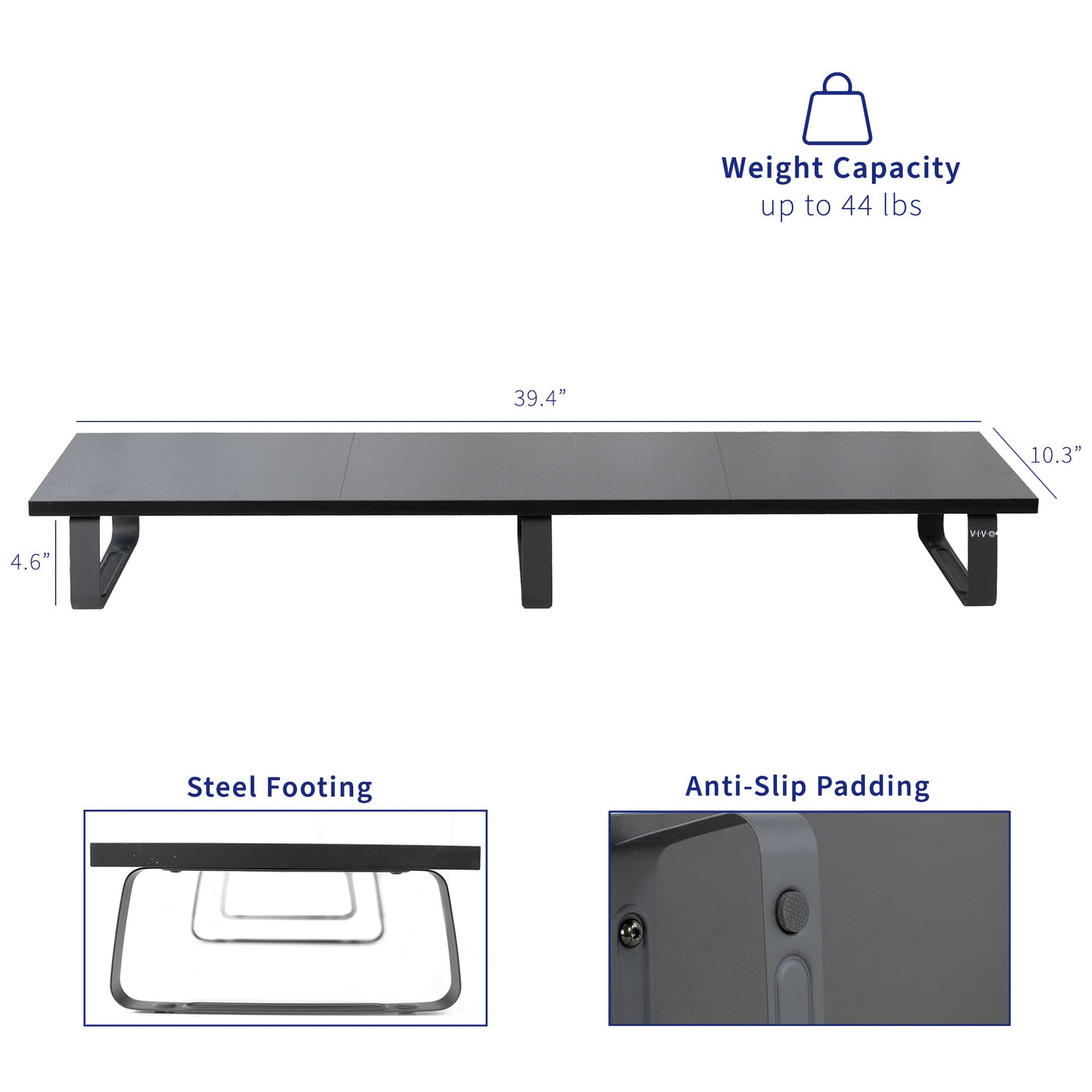 Vivo 39 Inch Extra Long Monitor Stand, Wood & Steel Desktop Riser, Dual Screen, Tv, Keyboard, Laptop, Ergonomic Desk And Tableto