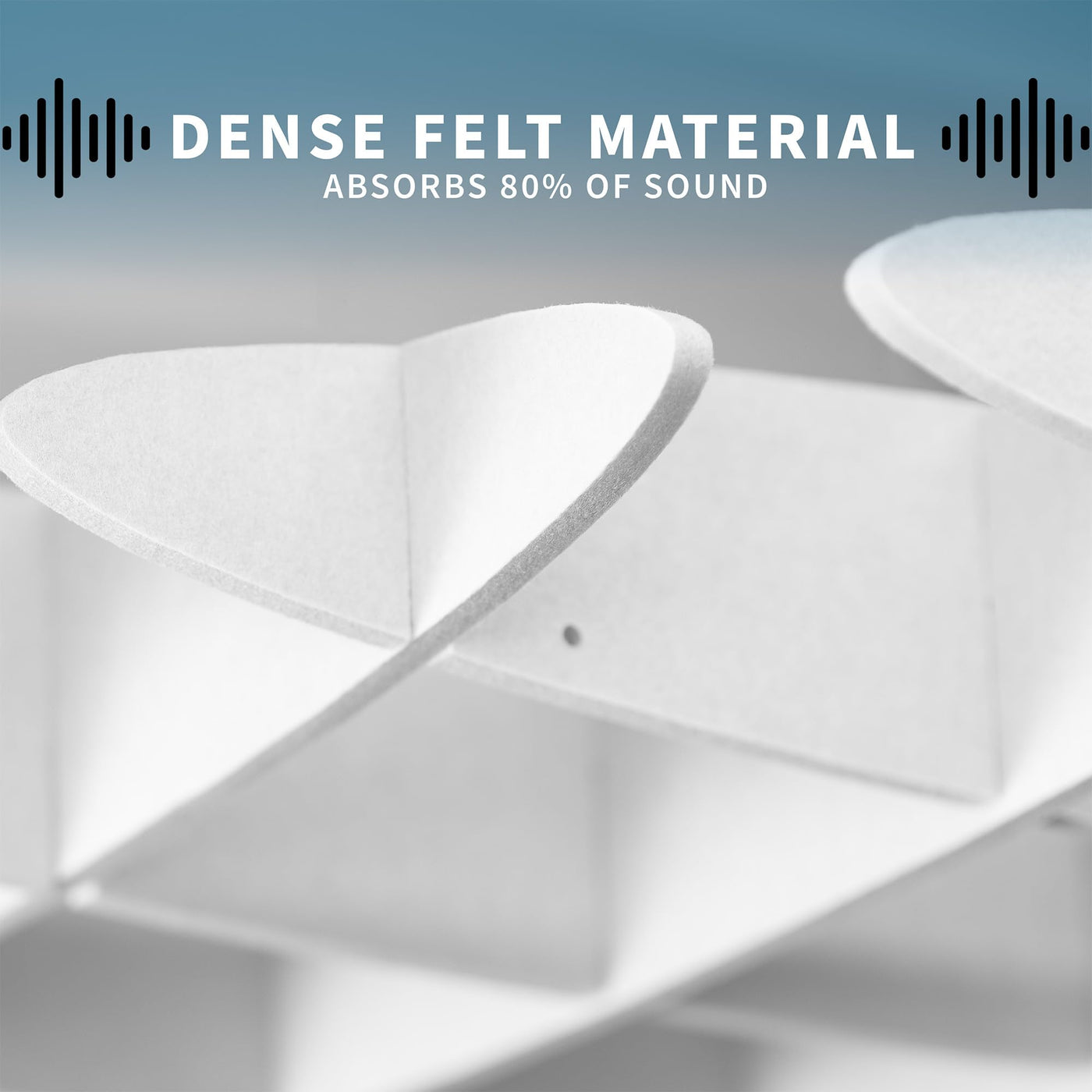 Vivo Acoustic Ceiling Waffle Panel, Hexagonal Hanging Sound Absorber, Modern Noise Reduction Chandelier, White, Pp-Cw01W