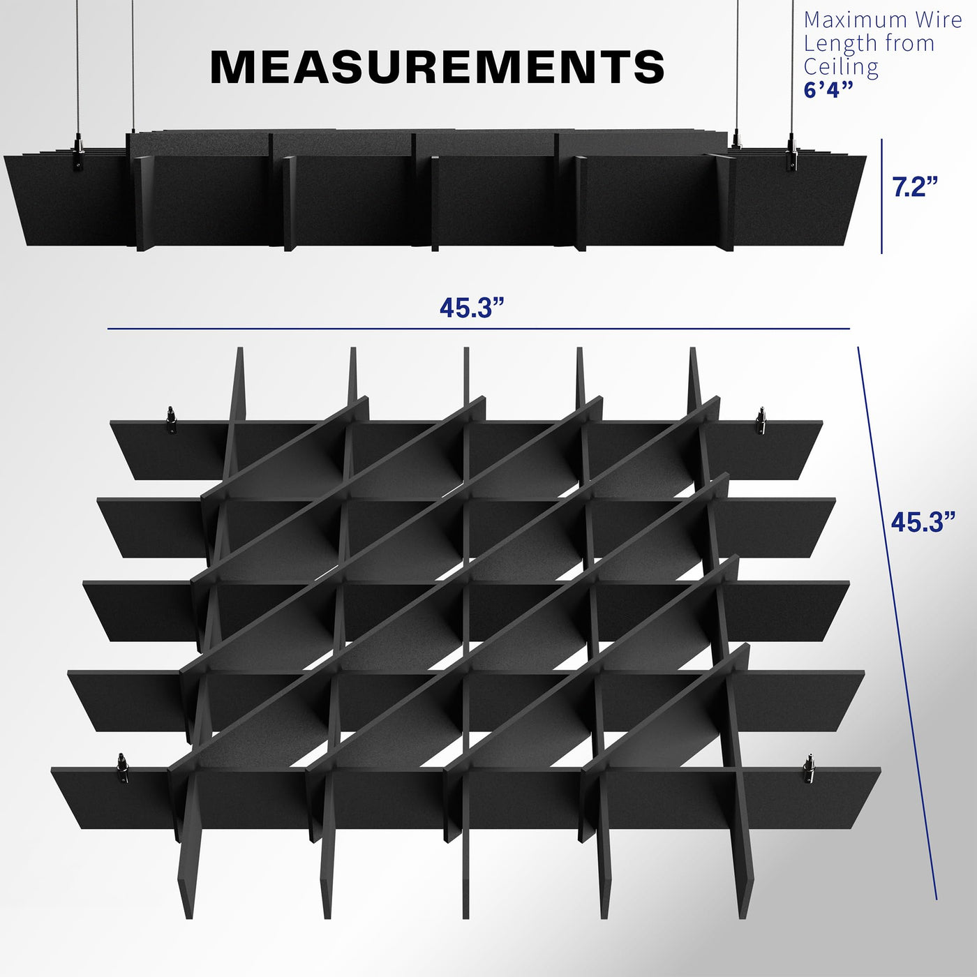 Vivo Acoustic Dual Layer 45 X 45 Inch Ceiling Waffle Panel, Hanging Sound Absorber, Modern Noise Reduction Chandelier, Black, Pp