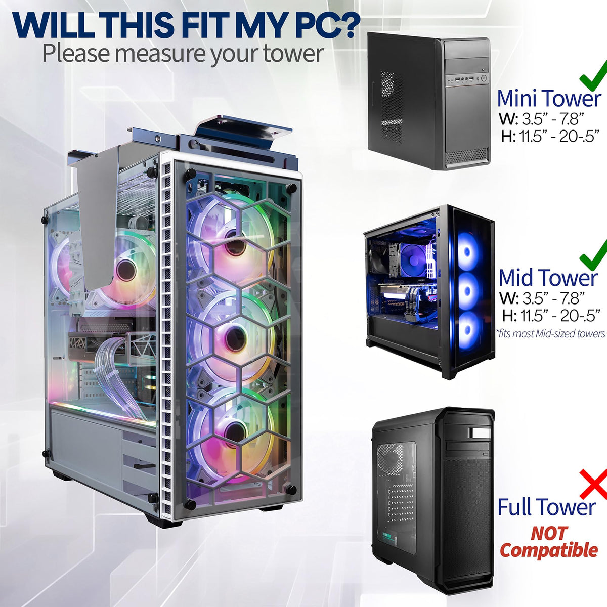 Customize your workspace with the Black Under Desk and Wall PC Mount (MOUNT-PC01) from VIVO! The safety and efficiency of your computer�s placement is no longer an issue. Clear up space underneath and around your workspace with this convenient and dependable computer holder. The mount elevates your PC above the ground, protecting it from getting kicked or bumped and limiting dust and dirt exposure. Adjustment is simple to fit the size of your computer just right, and the durable steel design safely holds your PC in a suspended position.