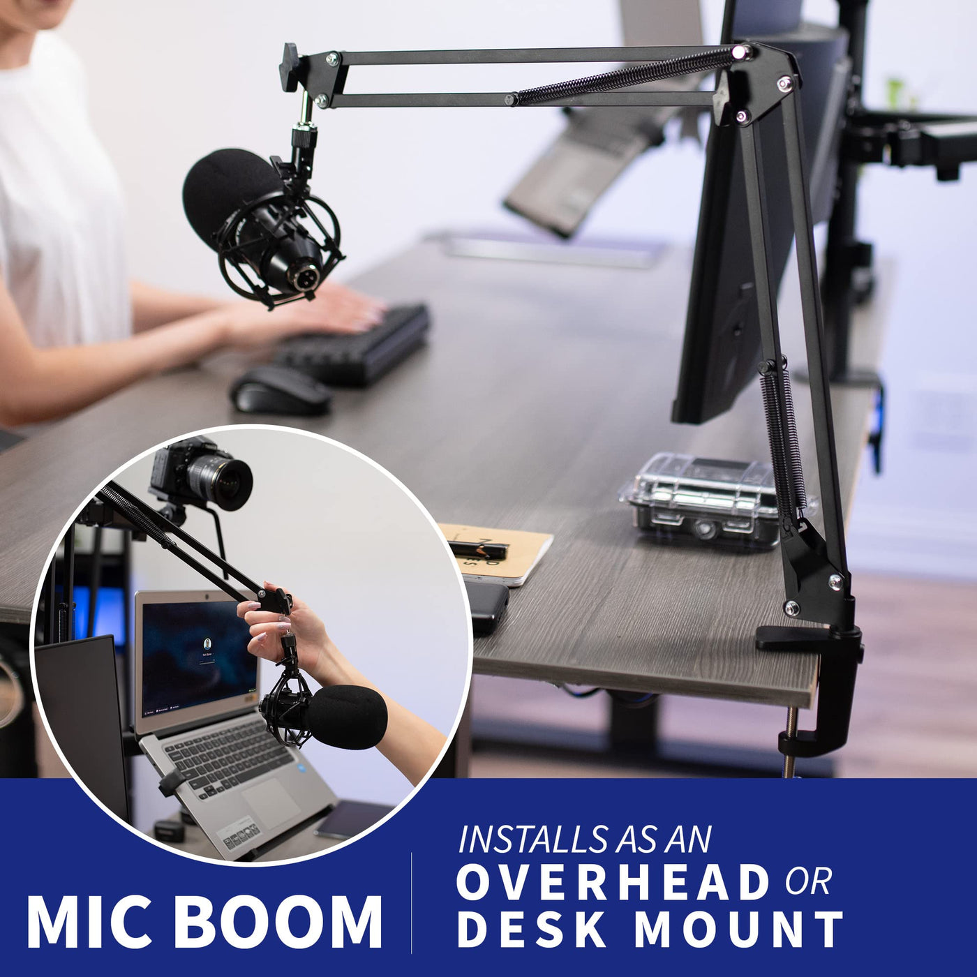 Vivo All In One Computer Studio Desk Mount, Mic Boom, Dual Monitor Mount Up To 32 Inches, Laptop Stand, Livestream Arms Compatib