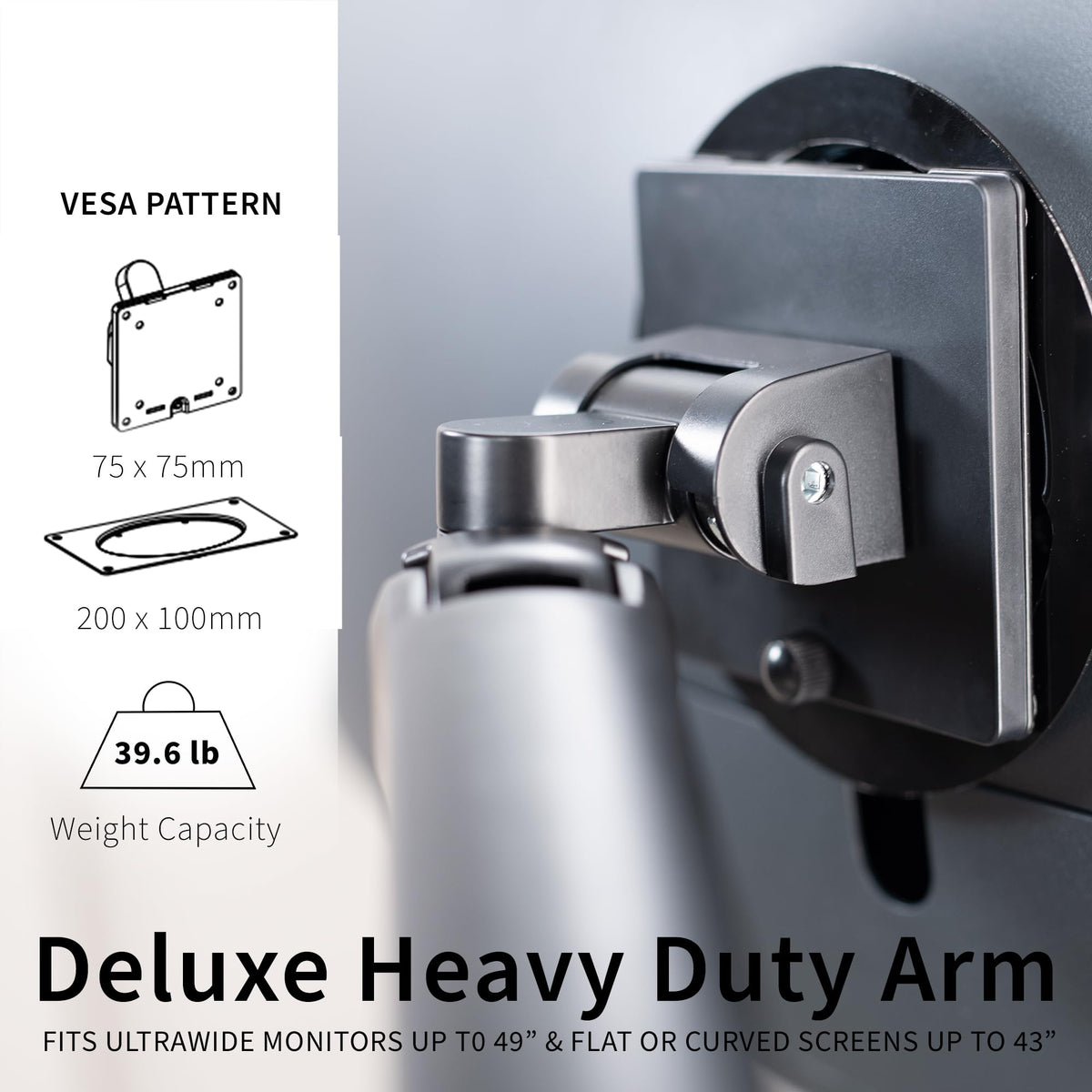 VIVO Aluminum Ultrawide Monitor Stand, Classic + USB, Fits up to 49 inch Screens, Single Articulating Pneumatic Arm, USB Ports, C Clamp and Grommet Desk Mount, Max VESA 200x100, Black, STAND V100HU