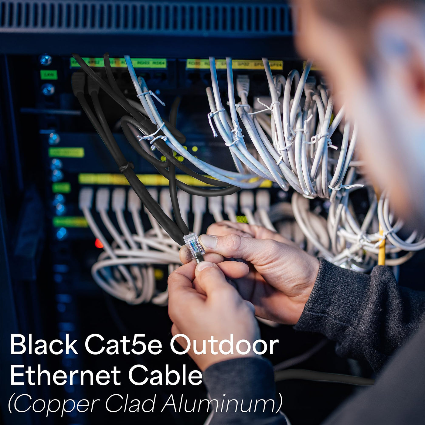 Cat5e UTP (unshielded twisted pair) CCA (Copper Clad Aluminum) 23 AWG bulk ethernet cable in easy to use pull box is ideal for your network installation, no matter if you are wiring your home or office. Case contains 250 ft of wire in waterproof shielding for outdoor direct burial. This unshielded cable comes in its own spool box and is connector free, giving the user the freedom to customize the length, wiring, and application. **Warning! Please note this Ethernet cable is made from Copper Clad Aluminum and therefore is NOT UL, NEC, ETL, or TIA certified. Copper Clad Aluminum cable is not recommended for POE (Power Over Ethernet) applications.