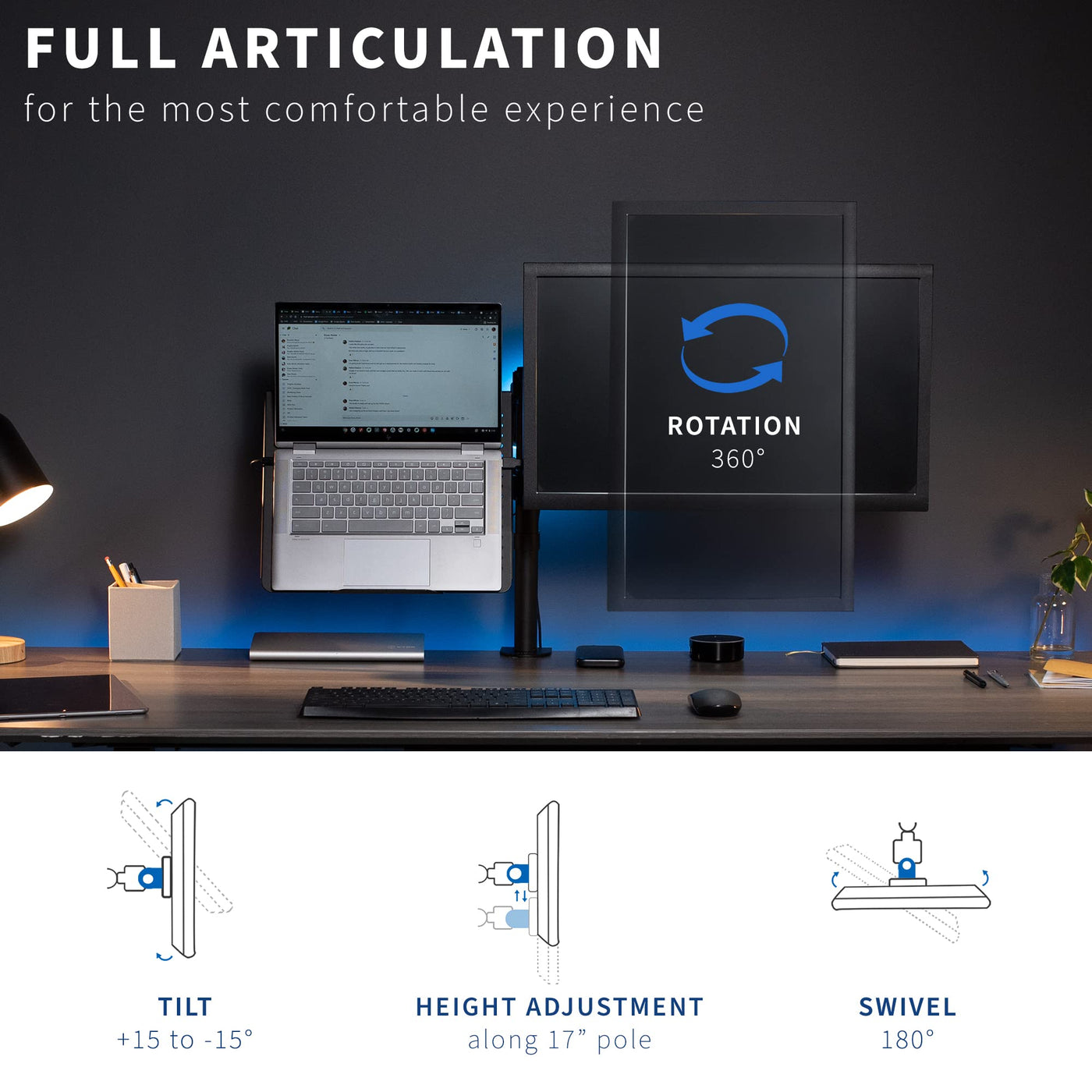 VIVO Black Fully Adjustable 13 to 32 inch Single Computer Monitor and Laptop Desk Mount Combo, Stand with Grommet Option, Fits up to 17 inch Laptops (STAND V002C)