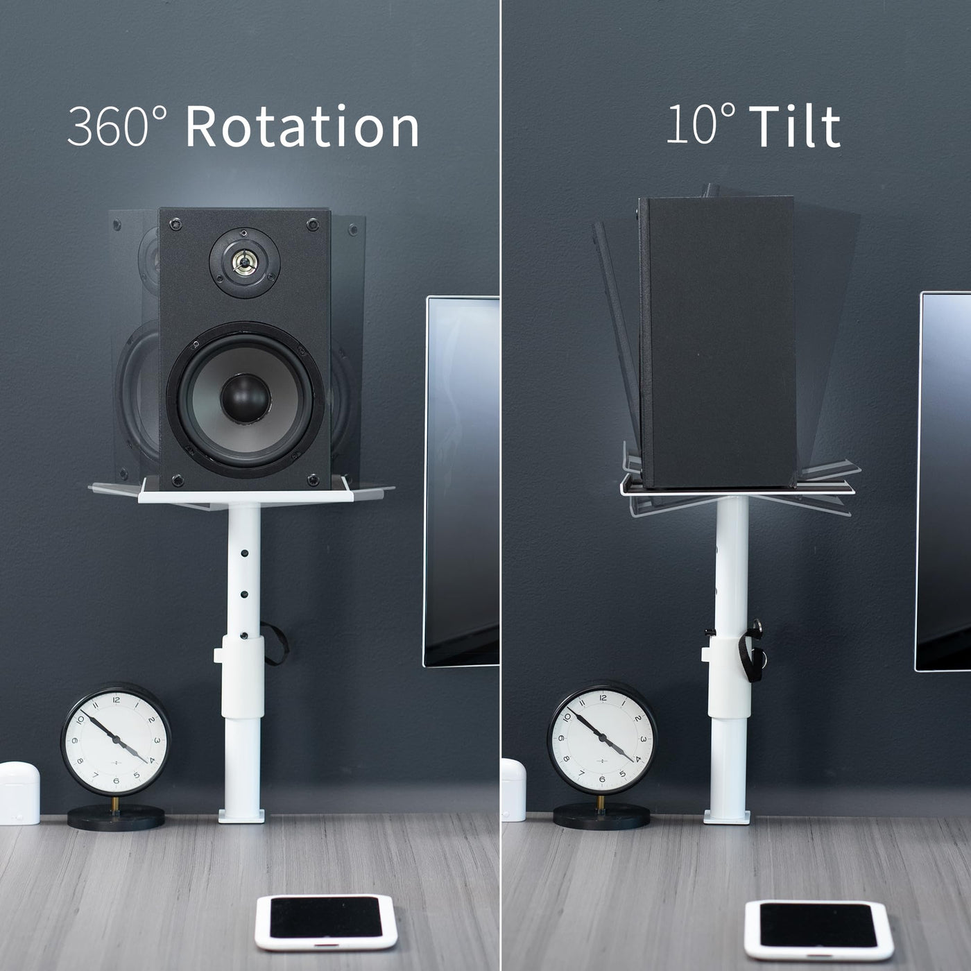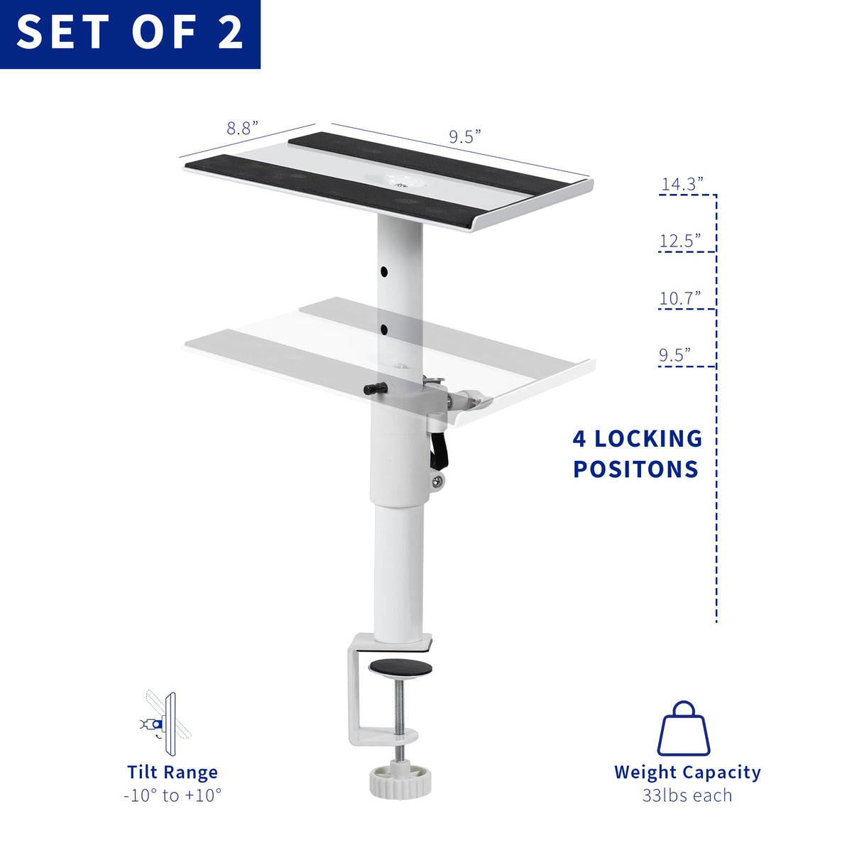 VIVO Clamp on Speaker Stand Desk Mount Set, 10 x 9 inch Trays, Height Adjustment and Tilt, Universal Audio Holders for Computer and Bookshelf Speakers, Elevated Sound, 2 Pack, White, MOUNT SP01CW