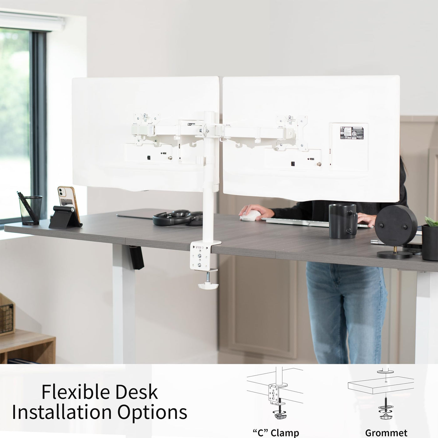 VIVO Dual Monitor Desk Mount, Heavy Duty Fully Adjustable Stand, Fits 2 LCD LED Screens up to 32 inches, White, STAND V032W