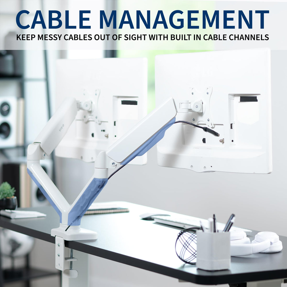 VIVO Dual Monitor up to 32 inches and 19.8 lbs per Screen, Mechanical Arm Desk Mount, Articulating Counterbalance, VESA Stand, Classic, White STAND V002OW