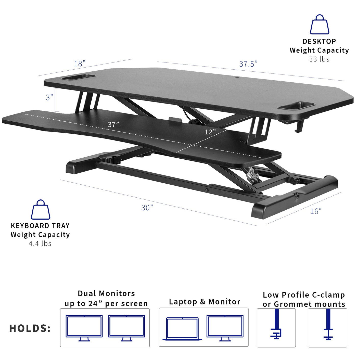 VIVO Extra Wide 38 inch Corner Desk Converter, K Series, Height Adjustable Sit to Stand Riser, Dual Monitor and Laptop Workstation with Wide Keyboard Tray, Black, DESK V000KL