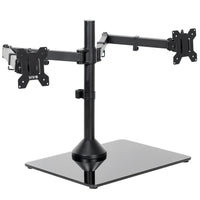 Enjoy the benefits of increased efficiency by using the Dual Ultrawide Monitor Desk Stand with Glass Base (STAND-V038FG) from VIVO! Enhance your work day with this high-grade steel stand built for scratch resistance and security. Features include arm articulation, removable VESA mounting plates, adjustable monitor height, integrated cable management, and more! Versatility of screen placement allows ergonomic viewing that eases muscle tension and reduces eye strain. The sturdy tempered glass base adds a classy look to your office while providing ample support for ultra-wide monitors. The base's durable surface also allows extra room for storage, thus freeing up valuable desk space!