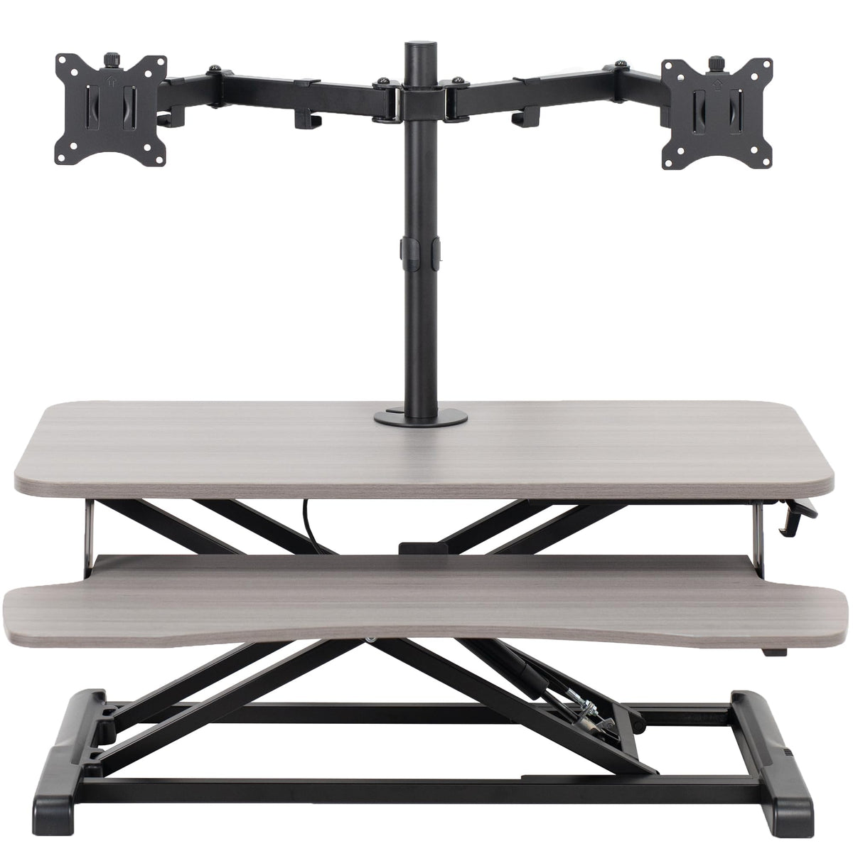 VIVO Height Adjustable 32 inch Standing Desk Converter with Dual 13 to 30 inch Monitor Stand, Sit Stand Monitor Mount and Desk Riser, Gray, DESK V000K M2G