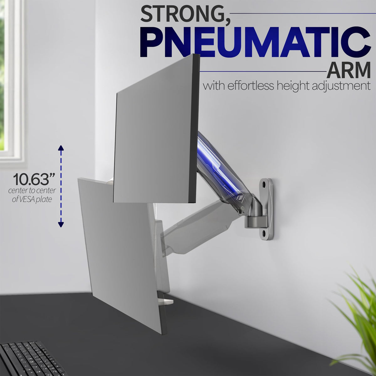 VIVO Height Adjustable Pneumatic Arm Single Monitor Wall Mount, Full Motion Articulating, Fits 17 to 32 inch Screen, Black, MOUNT V001A