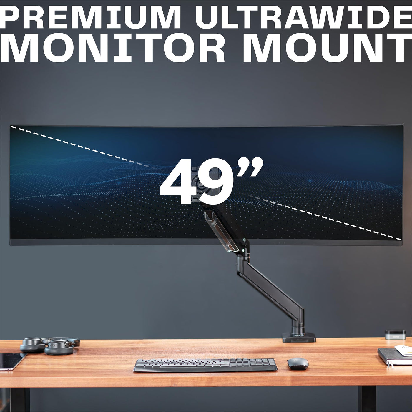 VIVO Premium Aluminum Heavy Duty Monitor Arm for Ultrawide Screens up to 49 inches and 33 lbs, Single Wall Mount, Pneumatic Height, Max VESA 100x100, Black, STAND V101G1