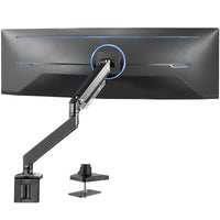 Enjoy comfortable viewing angles with the Pneumatic Arm Single Monitor Desk Mount with USB (STAND-V101G1U) from VIVO! Elevate your ultrawide monitor to an ergonomic height and adjust the viewing angle with just the touch of a hand. Featuring high-quality aluminum construction, flexible joints, smooth height adjustment, a sturdy desk clamp and grommet mount, integrated cable management, and more, this stand is ready to transform your workspace. The base contains two 3.0 USB ports and two multi-media ports that let you charge and sync your devices right at your desk! The classy appearance adds a modern look to any office while providing excellent support for your ultrawide monitor (up to 49�). All hardware and instructions are provided for easy assembly, so you can get your stand secured and monitor mounted in no time!