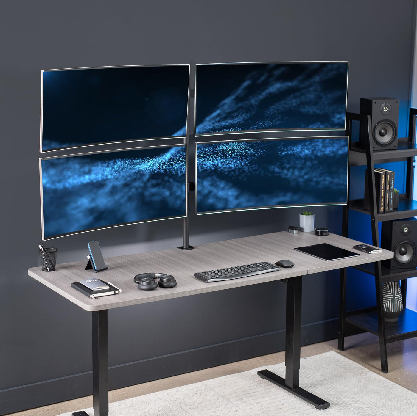 Enjoy a truly flush desk setup and save valuable work space with the Telescoping Quad Monitor Desk Mount (STAND-TS38C-4) from VIVO! Premium telescoping arms adjust in length to fit your 4 monitors, accommodating 27� to 38� screens with ease. The adaptable nature allows for a snug side-by-side monitor positioning without fear of arms extending beyond the bounds of your desk, creating a quad screen setup that�s flush with the wall. Finally, keep everything in view with this stacked display, saving valuable space by holding 4 screens on a single stand. The heavy-duty arms overlap and feature fewer joints than typical mounts which creates a stronger, more durable hold for four ultrawide monitors. Additional features include sleek cable management for an organized appearance, screen articulation for ergonomic viewing angles, and height adjustment for customized placement. All hardware and instructions are provided so you can get your new stand assembled in no time!