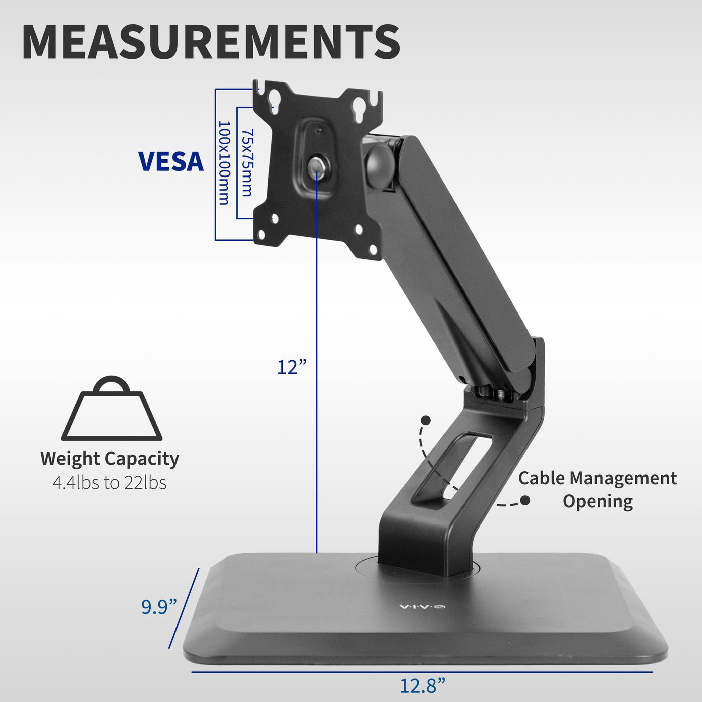 Create a flexible, sturdy setup for your monitor with Pneumatic Arm Monitor & Touch Screen Desk Stand (STAND-V001R) from VIVO! The arm�s powerful lifting mechanism features a built-in tension spring adjustment so you can perfectly counterbalance the weight of your monitor. Enjoy articulation for optimal screen positioning, height adjustment for ergonomic viewing, and a rotating base for maximum flexibility in screen placement. This mount is perfect for touch screen setups where the monitor is repositioned frequently and multiple viewing angles are required. All necessary hardware and instructions are provided, so you can achieve a more advanced monitor setup in no time!