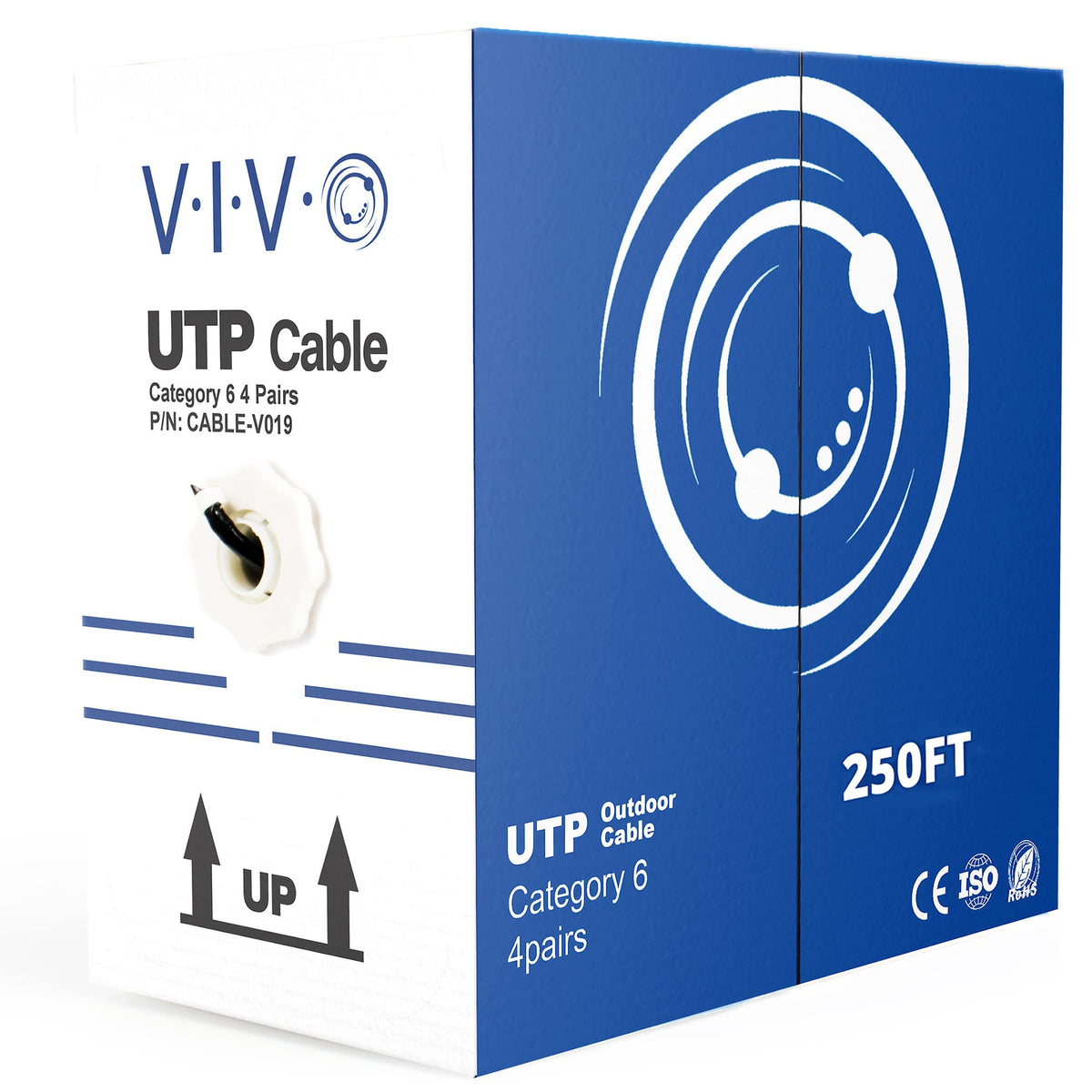 VIVO Waterproof 250ft Bulk Cat6 Wire, CCA Ethernet Cable, 23 AWG, UTP Pull Box, Outdoor Direct Burial, Black, CABLE V019