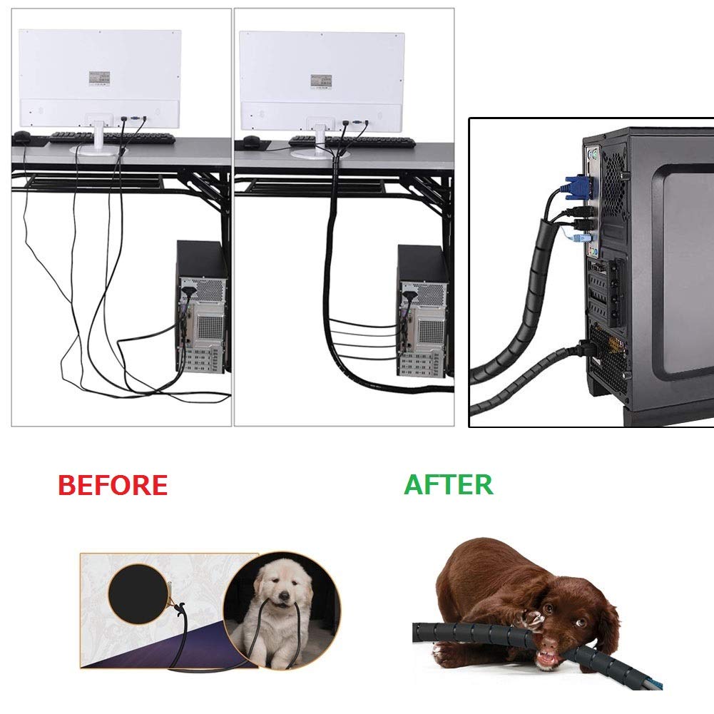 Viwieu Black Computer Cable Management Sleeves Value Pack, Large 1.1'' Pet Proof Cable Cover For Wires And 0.87'' Cord Organizer