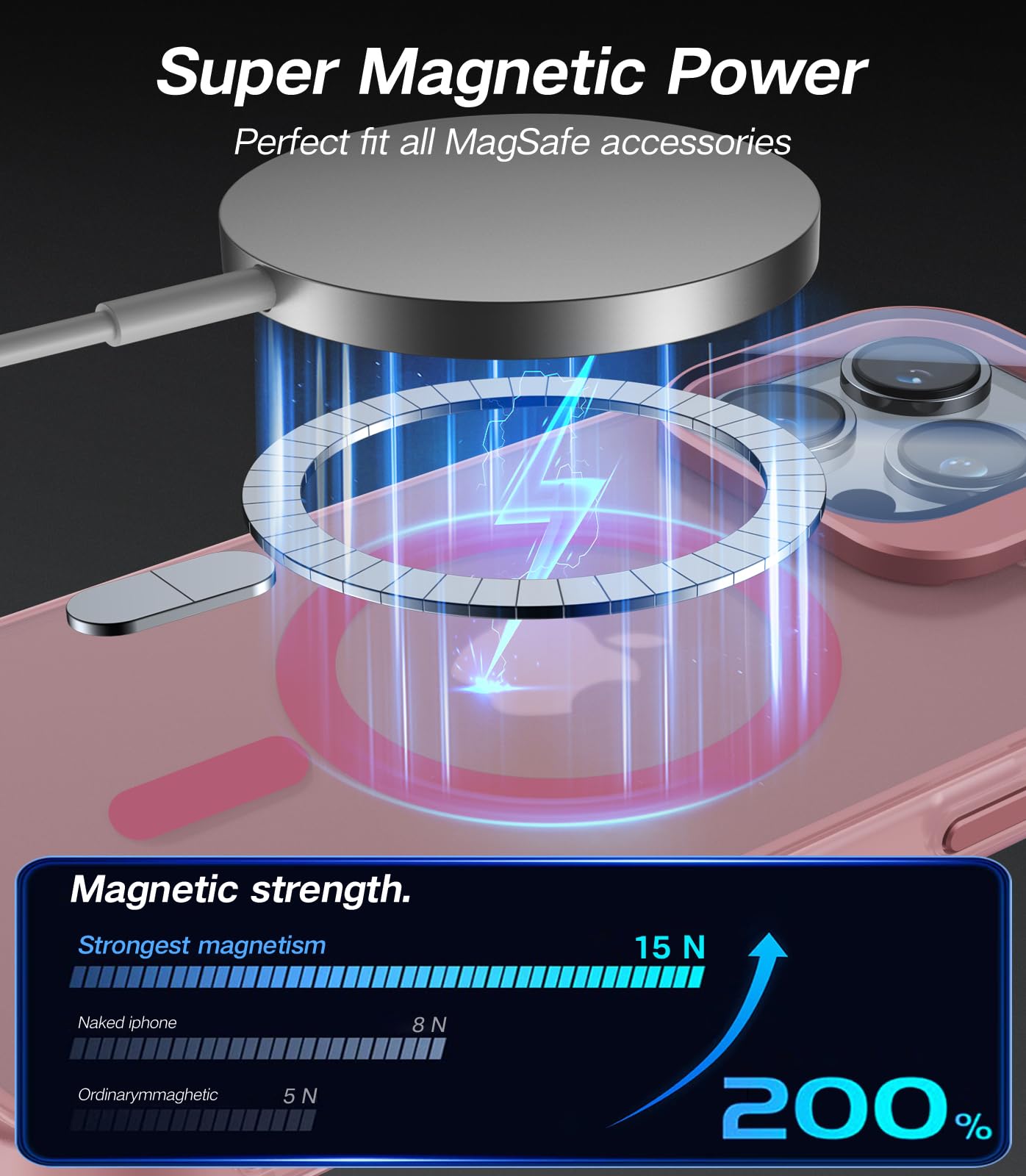 Q: Is the VOFATA case compatible with MagSafe accessories?A: Yes, the VOFATA case is designed to be fully compatible with all MagSafe accessories, thanks to its built-in magnetic ring that aligns perfectly for seamless attachment and faster wireless charging.