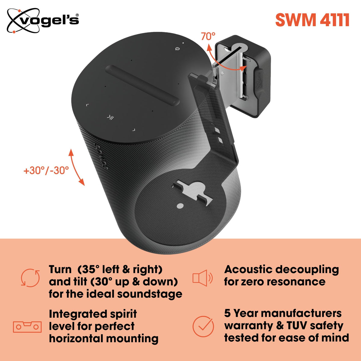 Vogel'S Swm 4111 Speaker Wall Bracket For Sonos Era 100, Max. 11 Lbs (5 Kg), Tiltable 30/+30, Swivels Up To 70 (Left/Right), Bl
