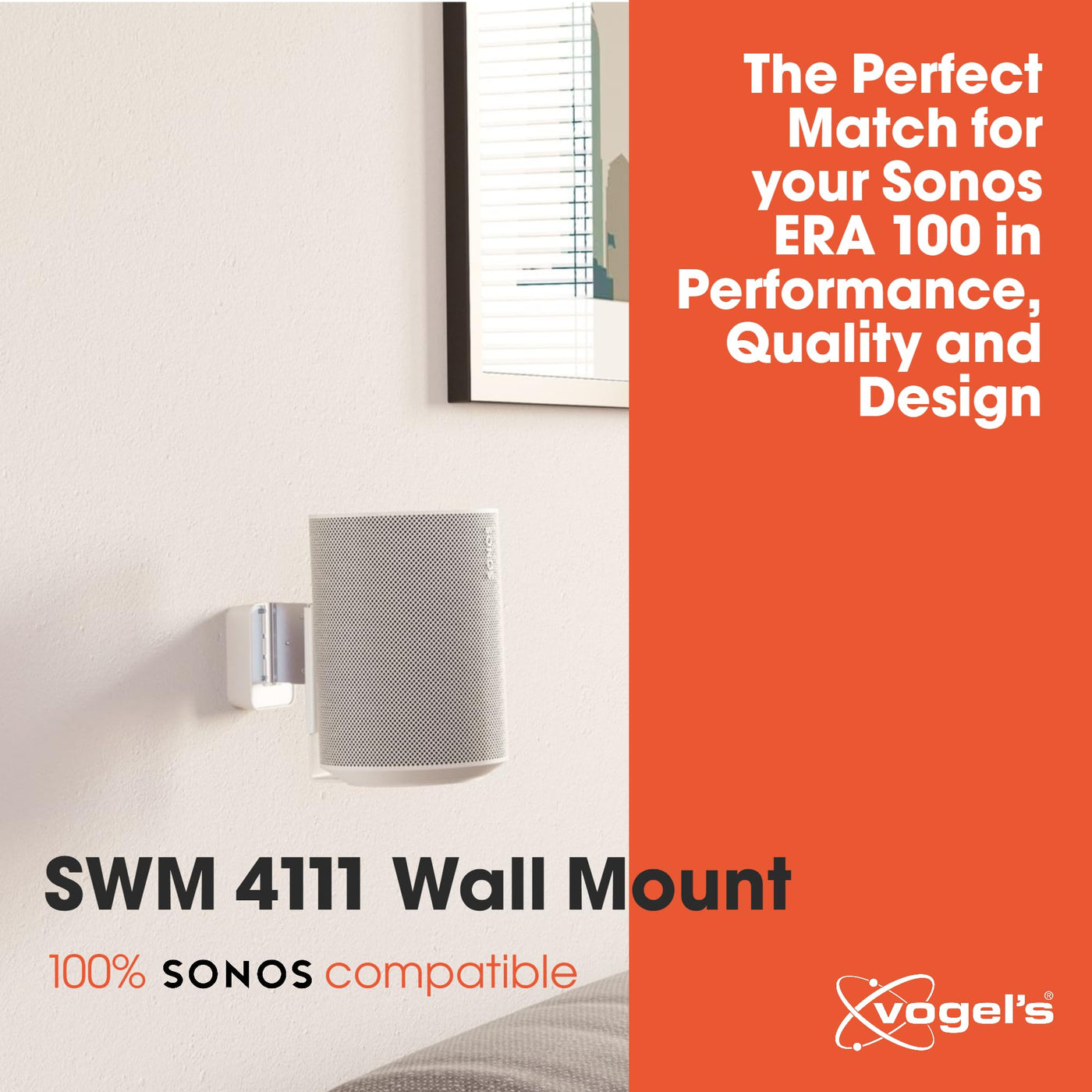 Vogel'S Swm 4111 Speaker Wall Bracket For Sonos Era 100, Max. 11 Lbs (5 Kg), Tiltable 30/+30, Swivels Up To 70 (Left/Right), Wh