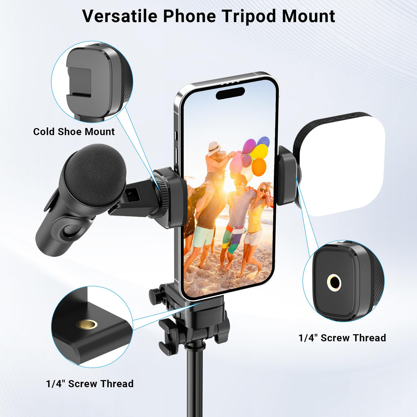 Voinap Phone Tripod Mount With 1/4'' Screw Thread, 360 Rotate 180 Tilt Phone Holder Replacement With Cold Shoe, Versatile Mount