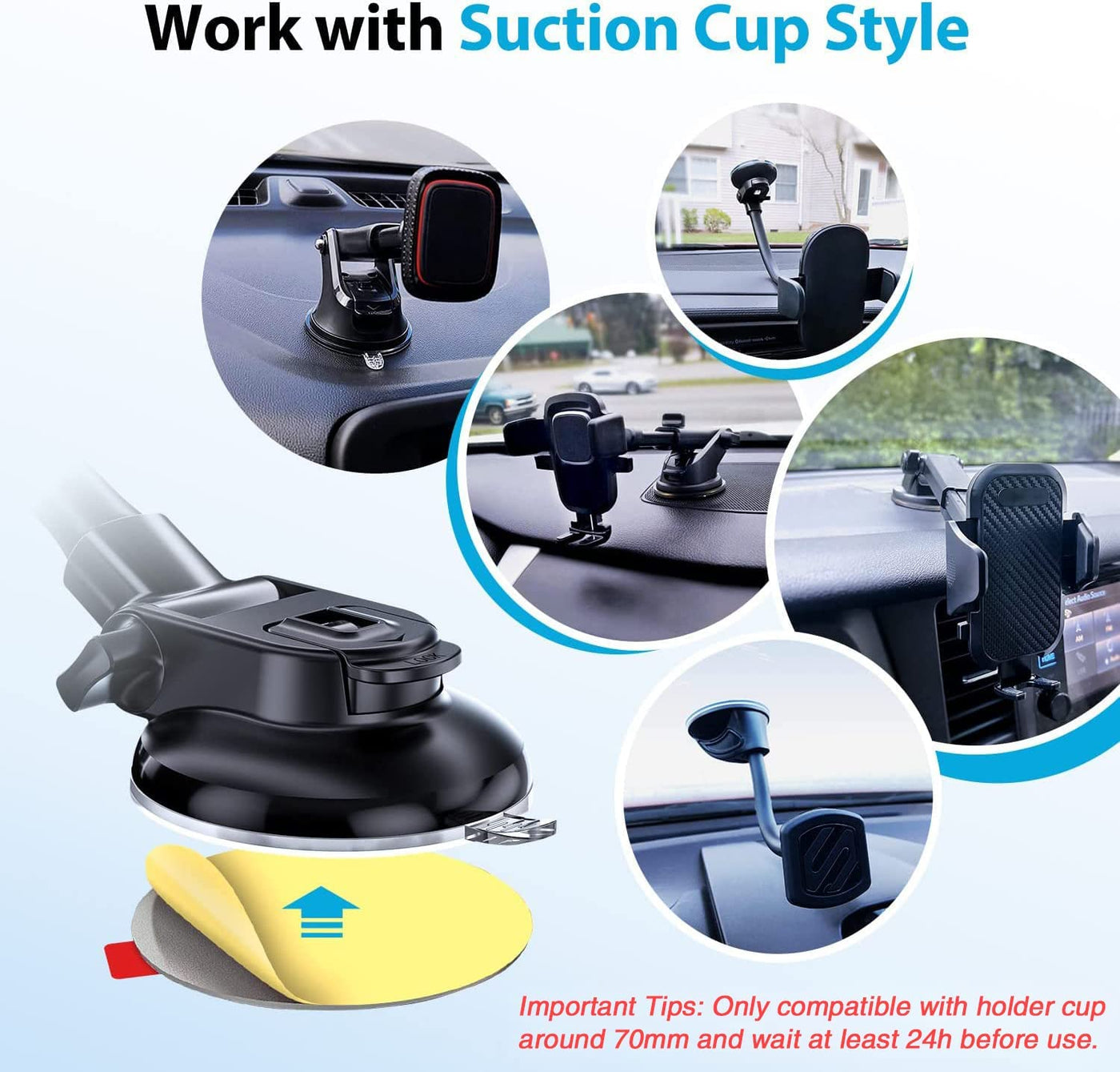 ?Universal Compatibility?3M Double Sided Tape Disc 70Mm Fits Suction Cup Style Accessories, Assortment, Suitable For Dashboard Surfaces And Windshields. Sticky Pad For Car Dashboard. Solution Of Suckers Falling Off. Applicable Dash Suction Cup Phone Mount, Windshield Cell Phone Holder, Gps Navigation Bracket, Car Tablet Stand, Outdoor Camera Mount, Decoration, Wireless Charger Base, Electronics, Monitor, Toy, Radar Detector Mount, Backup Camera, Action Camera, Mirror. | ?Genuine 3M Sticky Self-Adhesive Dots ?These Phone Dashboard Car Sticky Pad Have High Temperature(120?+) Resistance Performance, You Can Use It Without Worry In Hot Summer, Even In Texas. Extra Strong Both Side Round 3M Vhb Dashboard Cell Phone Grip Replacement Adhesion Pads' Stickiness Is 40% Stronger Than Ordinary 2 Side Sticky. Easy To Fix Your Navigator Bracket. 3M Double Sided Tape Heavy Duty Dashboard Mount Base, Stable And Secure Driving Truck, Vehicle In Bumpy Roads. | ?Easy To Install?Important: Please Wait 24 Hours Before Use. The Dual Sided Circles Double Sided Mounting Tape Comes With Cleaning Wipes To Clean The Surfaces Before Applying, After The Surface Is Dried, Peel Off The 3M Adhesive Film To Stick The Surface Of Dashboard Or Windshield, Auto Windscreen, Glass, Front Window. You Can Also Use The 2.76In Double Sided Adhesive Tape Replacement Parts On The Bottom Of The Suction Cup Directly. | ?Easy To Remove?3M Tape Anti-Heat Double Sided Suction Cup Sticker Backing Mounting Disk Is Easy To Remove, You Can Remove It Without Leaving Adhesive Residue, Will Not Damage The Dashboard Surface, No Tool Required. Best Car Cellphones Mount Adhesive Attachment Replacement Or Rear View Mirror Adhesive. Make Sure The Surface Of The Chosen Area And The Suction Cup Of The Gps/Magnetic/Rear Adhesive Replacement View Camera Holder Is Cleaned Completely Before Applying A New Adhesive. | ?Package Includes?2 X 2.76 Inch ( 70 Mm Diameter ) 3M Automotive Double Sided Tape Heat Resistance Round Dashboard Pad Mounting Disk, 4 X Cleaning Pads, 1 X User Manual. We Provide A One-Year Warranty And If You Need Any Help With Our Product, Please Do Not Hesitate To Contact Us. All We Want Is Your Satisfaction. Important Tips: These 3M Double Sided Tape Automotive Only Compatible With Holder Cup Around 70Mm And Must Wait At Least 24 Hours Before Use To Increase Adhesion.