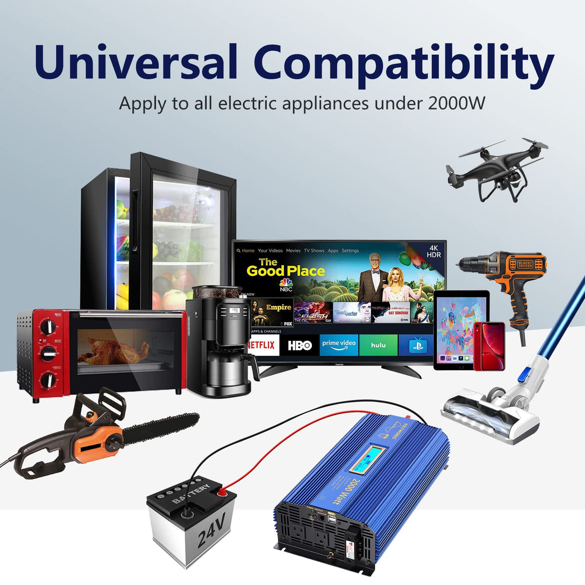 Voltworks 24 Volt 2000W Pure Sine Wave Power Inverter 24V Dc To 110V 120V Ac And Hardwire Block With Lcd Display Remote Controll