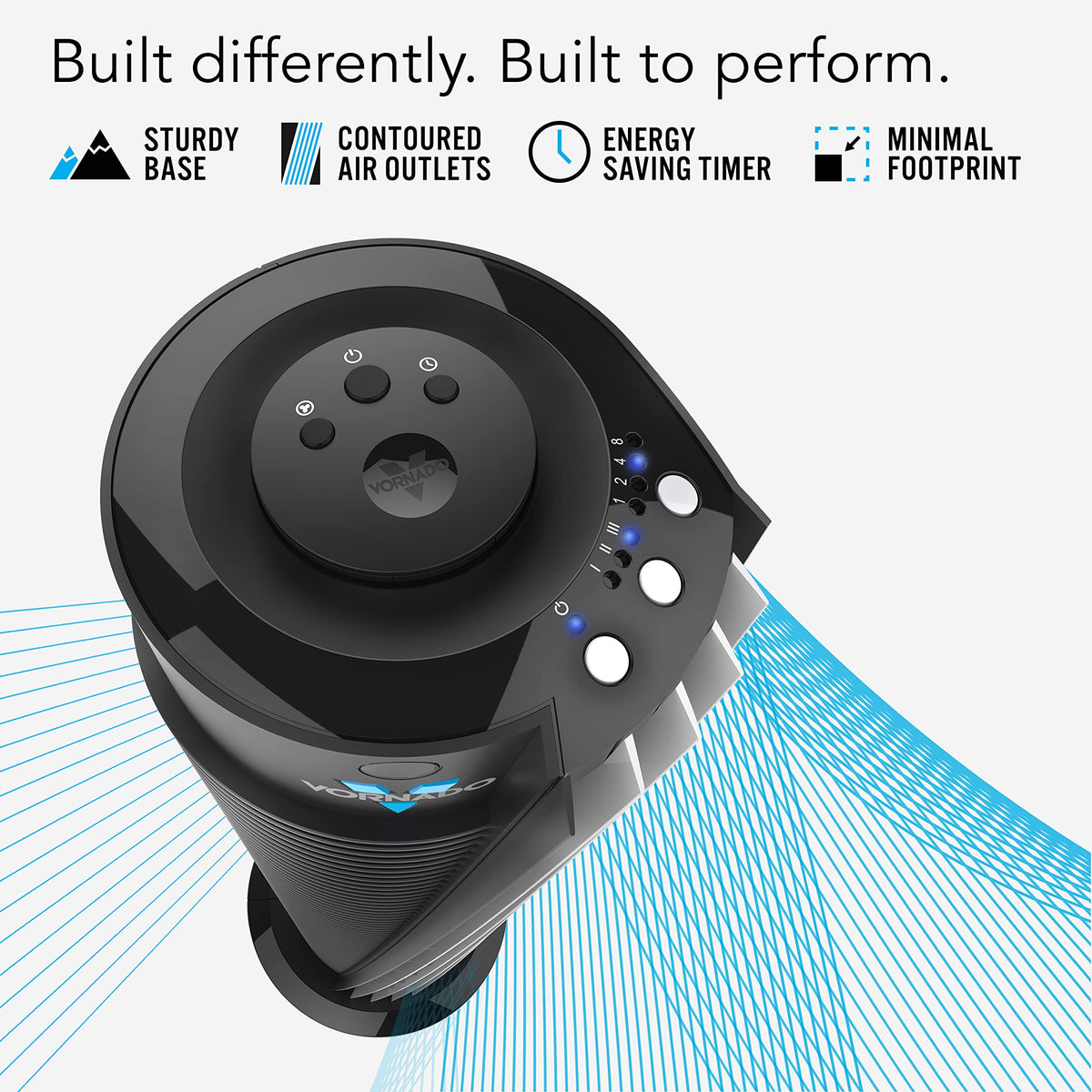 Vornado 143 Whole Room Air Circulator Tower Fan With Timer And Remote Control, 29'', Black