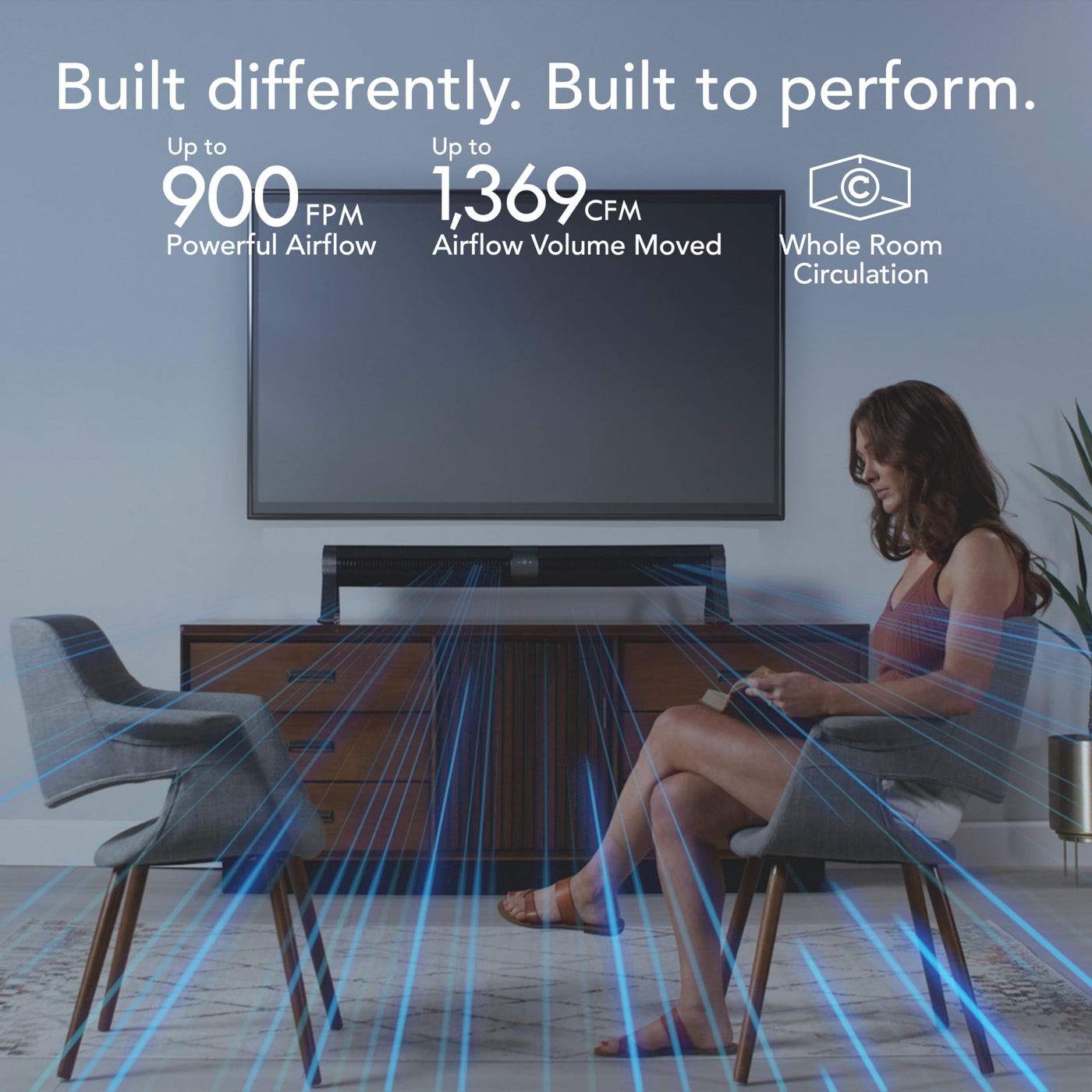 Typical Tower Fans Are Stuck Being One Dimensional, But What If Your Space Needs Something - Different? Airbar Allows You To Have That Low-Profile, Credenza-Complementing, Horizontal Airflow Option That Has The Size And Power To Handle Medium To Large Spaces. Take Powerful Tower Airflow And Turn It On Its Side. Airbar 6 Allows You To Feel A Wide, Horizontal Comfort Unlike Anything Else, And With Full-Range Tilt, You Can Direct It Anywhere. The Magnetic Base System Easily Snaps Into Place To Convert From Tower Fan To Airbar And Back Again. No Tools, No Hassles.