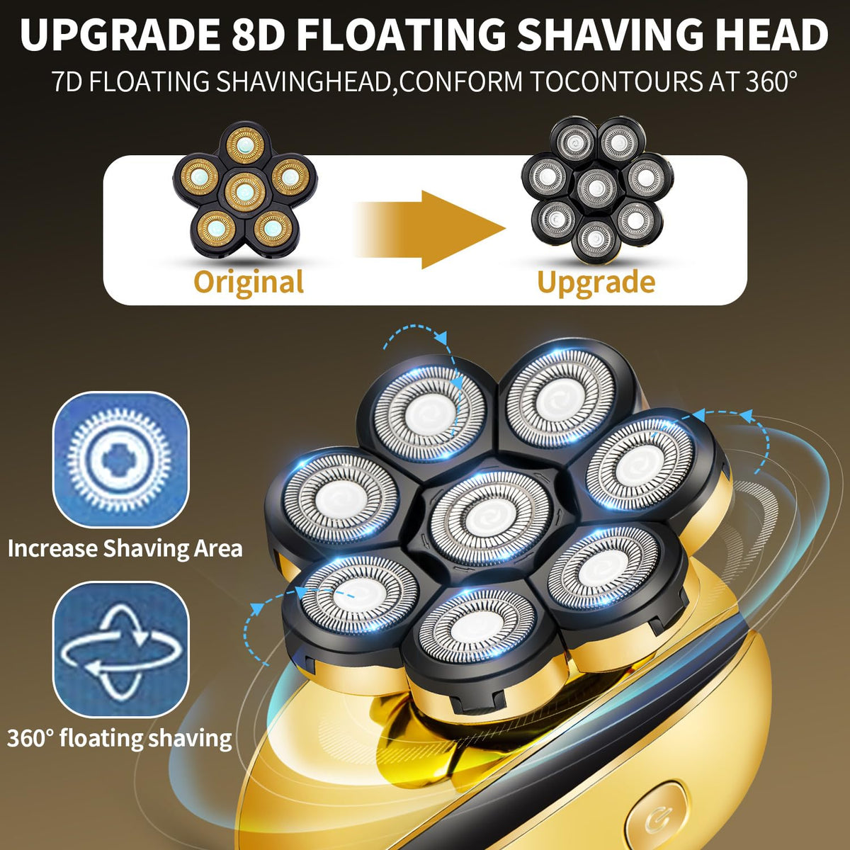 Votmoni 8D Head Shavers For Bald Men Electric Razor For Men Multifunctional Grooming 5 In 1 Wet Dry Rotary Shavers & Nose Ear Ha