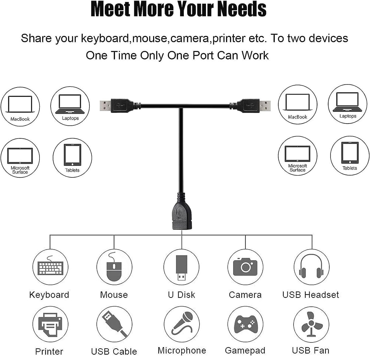 Vrllinking Usb Splitter Cable,Printer Sharing Switch Cable, Usb Splitter 2 Male 1 Female For Printer, Scanner, Speaker, Keyboard