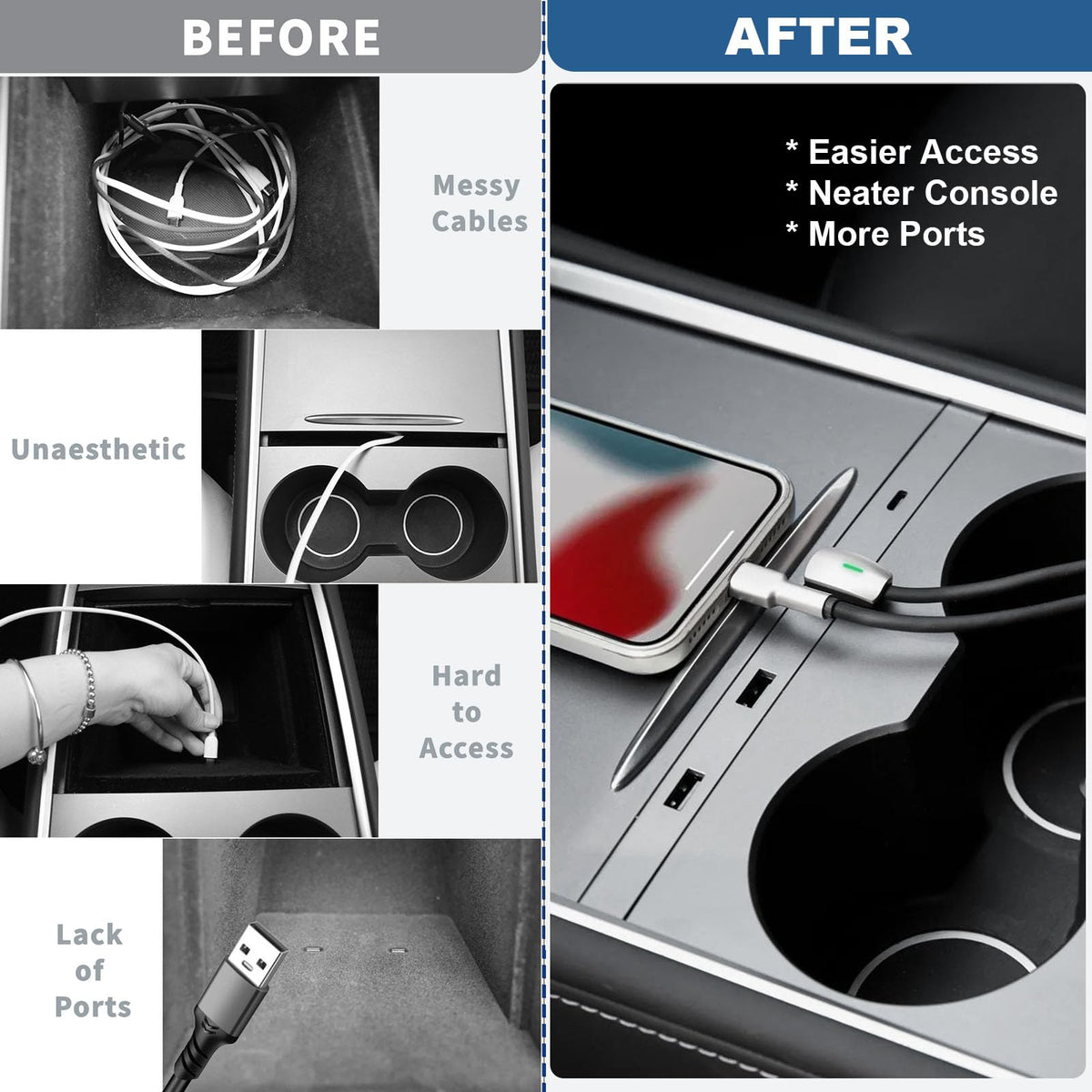 Vugosson Usb Hub For Tesla Model Y 2021 2024 Model 3 2021 2023 Center Console, Support Usb C Fast Charging, Docking Station Acce