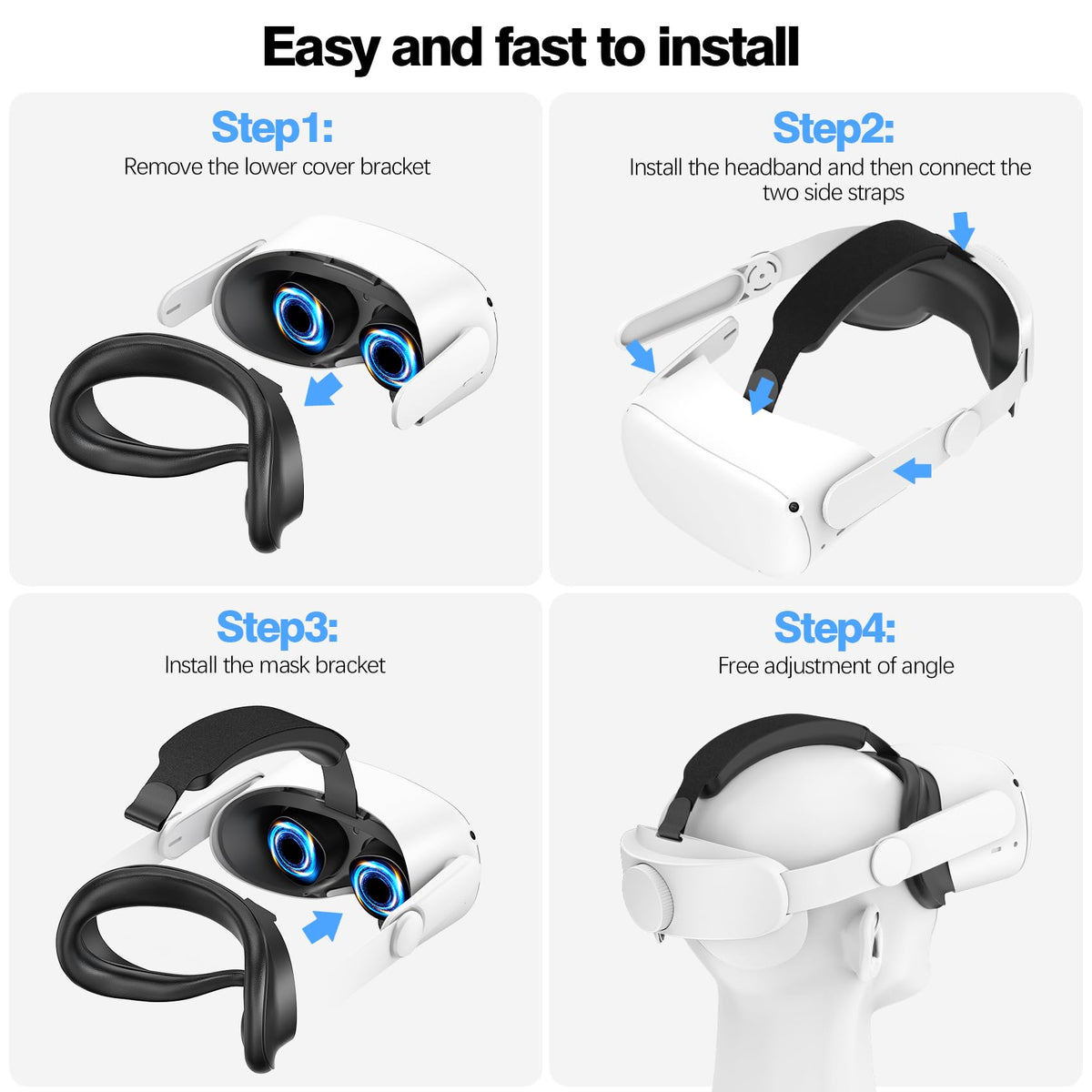 ?Reduce Facial Pressure?Adopt The Gravity-Balanced And Distributed Design,This Elite Strap Replacement For Oculus Quest 2 Makes Its Gravity Evenly Distributed In Different Positions Of The Head,Further Reducing Facial Pressure,The Back Wing-Shaped Wide Bracket Can Offer Larger Head Support Than Original While Preventing Slippage,It Can Be Freely Adjusted To The Most Comfortable State,Making Your Device Fit Your Head Better,Increasing Your Gaming Immersion. | ?Superior Side Straps?The Oculus/Meta Head Strap Is Made Of Upgraded Polymer Material,Which Is Eco-Friendly And Has Extreme Toughness And Stability,15,000+ Bending Test Ensures Durability And Long Lasting,Never Need To Worry That The Side Strap Will Snap,Enhance The Wearing Experience And Thus Make The Vr Process More Enjoyable. | ?Easy Size Adjustment?The Size Of The Oculus 2 Elite Strap Can Be Adjusted With A Round Rotary Knob And The Fastening Screw Will Stay Locked Automatically,Easy To Adjust To The Best.This Head Strap Has Larger Head Support Which Fits Head Circumference 17.7-29.5Inch,Suitable For Both Adults And Children,And Children Can Easily Use And Adjust It By Themselves. | ?Premium Pu Leather Cushions?Equipped With Skin-Friendly Pu Leather Pads At Each Support Point,The Upgraded Head Pad With 80Mm Width 15Mm Thickness Is More Soft,Breathable And Absorbent,Which Can Relieve The Heat In The Back Of The Head When Playing Games.The High-Grade Comfortable Pu Leather Cushion With A Smooth Surface Is Very Easy To Clean,Just Wipe With A Damp Cloth,No Any Maintenance Worries. | ?Lightweight And Portable? The Whole Head Strap Weighs Only 226G,Can Fit In The Official Carrying Case And Most Carrying Cases On The Market,Very Easy For Storage And Carry When Traveling.