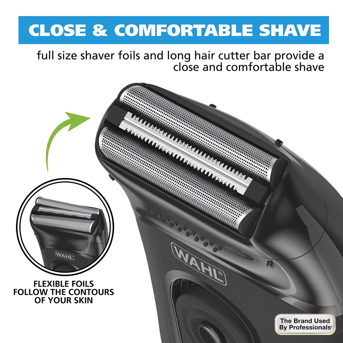 Wahl Compact Rechargeable Lithium Ion Shaver Kit With Hygienic Rinseable Foils & Cutter Bar With Dual Flexible Foils That Move W