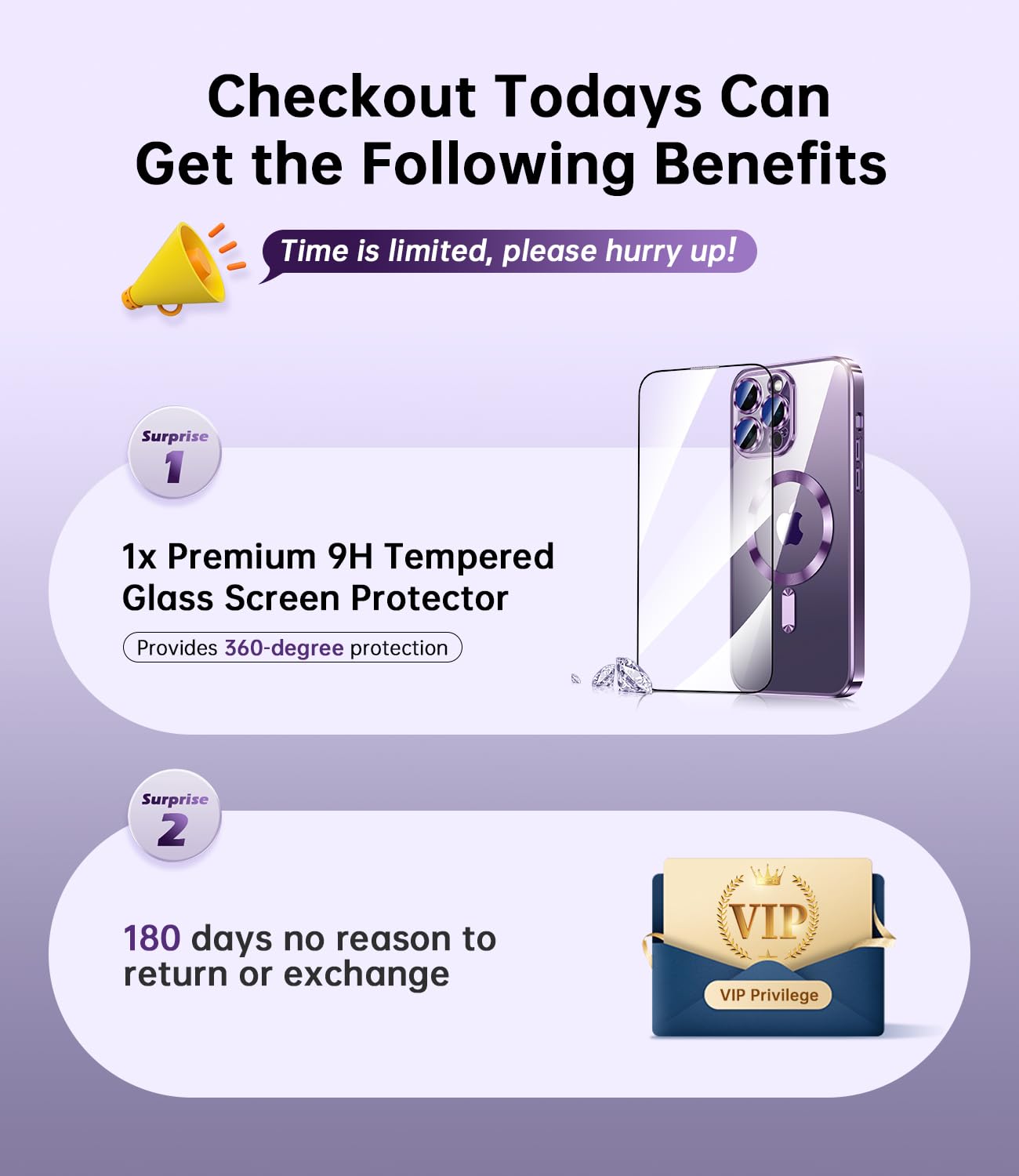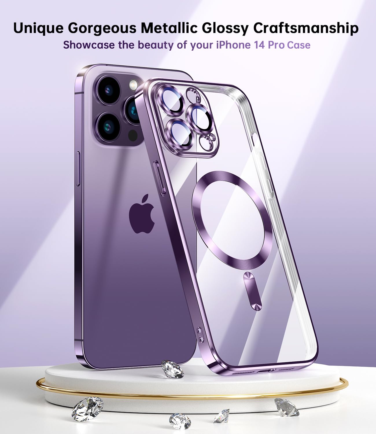 Waldeng For Iphone 14 Pro Case With Integrated Camera Lens Protector, [Compatible With Magsafe] [Original Iphone Exterior], Crystal Clear Case For Iphone 14 Pro 6.1'', Purple